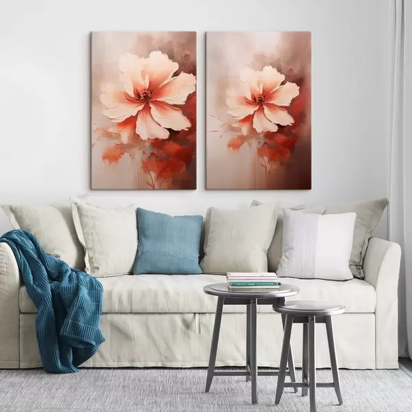 Obraz Kvetinová kompozícia: biele a krémové okvetné lístky, koralové akcenty a jemné zamatové pozadie Nr. m01088