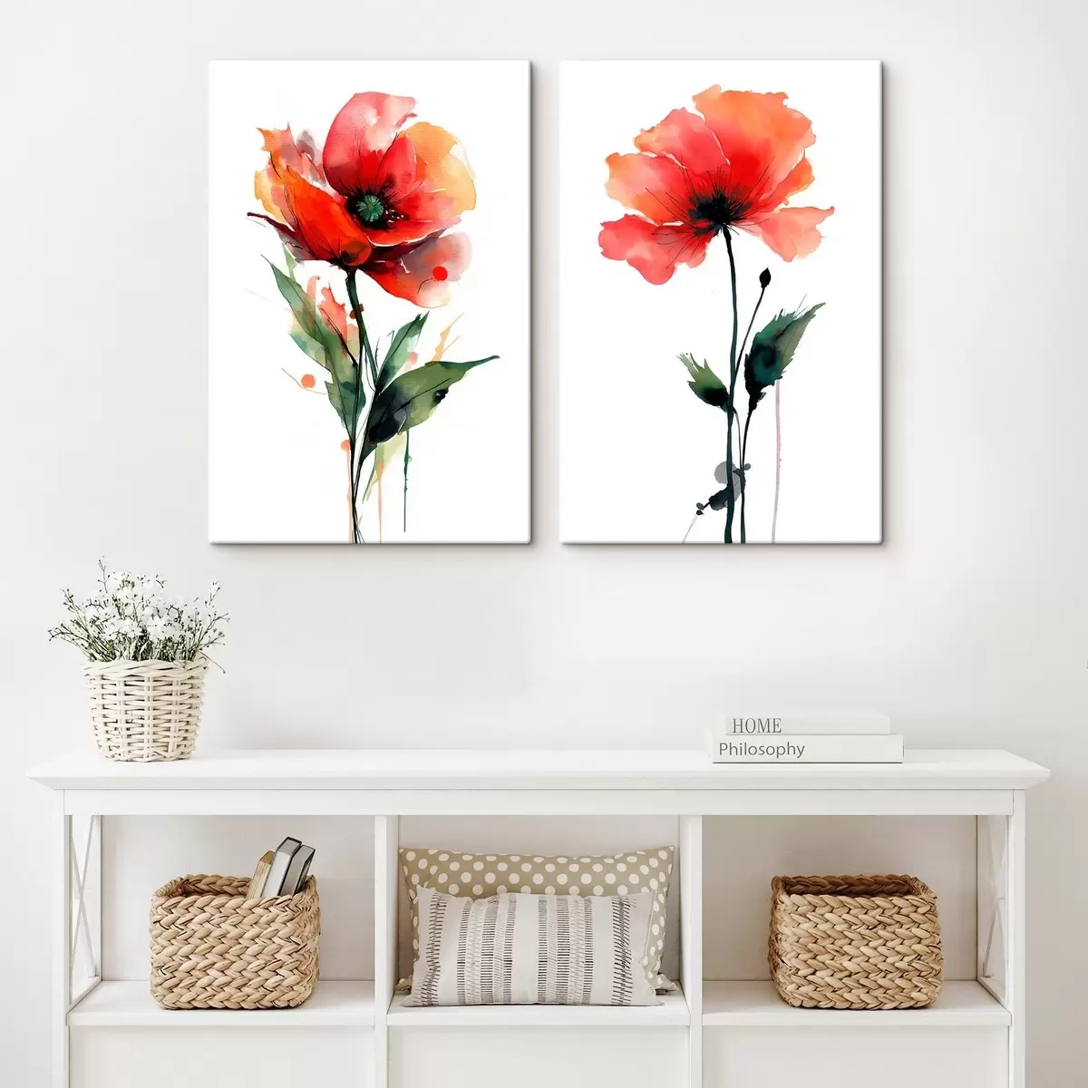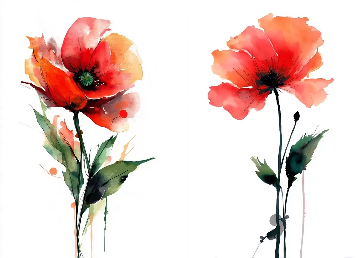 Obraz Kompozícia s červenými makmi na bielom pozadí v akvarelovom štýle Nr. m01100