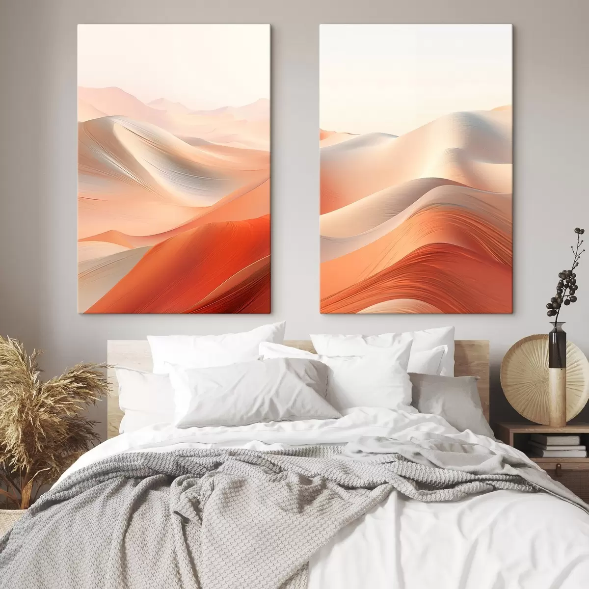 Obraz Abstraktná púštna krajina s vlniacimi sa pieskovými dunami v teplých oranžových a bielych odtieňoch Nr. m01123