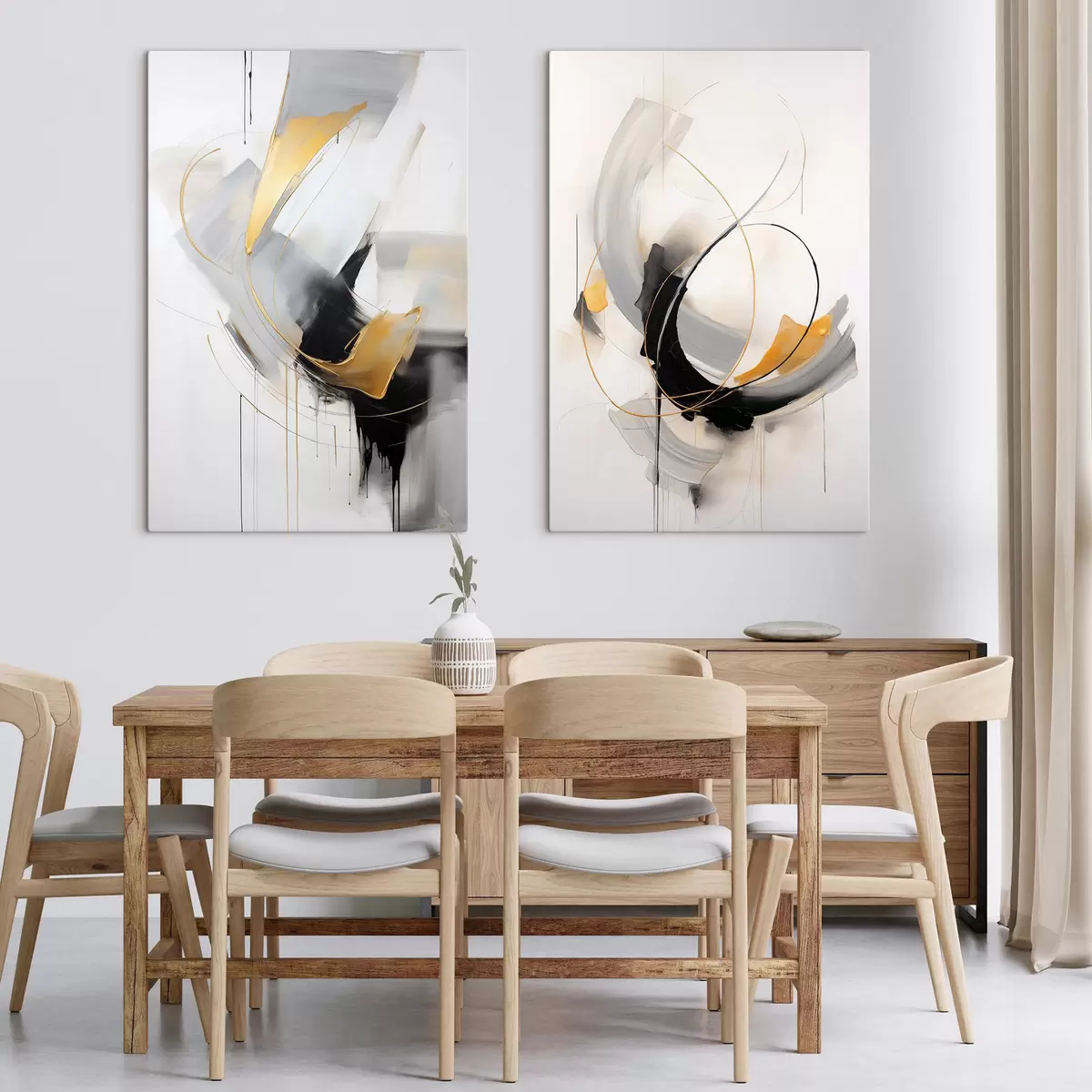 Obraz Abstraktná maľba so žltými a čierno-bielymi imitáciami štetcom, dynamické línie Nr. m01125