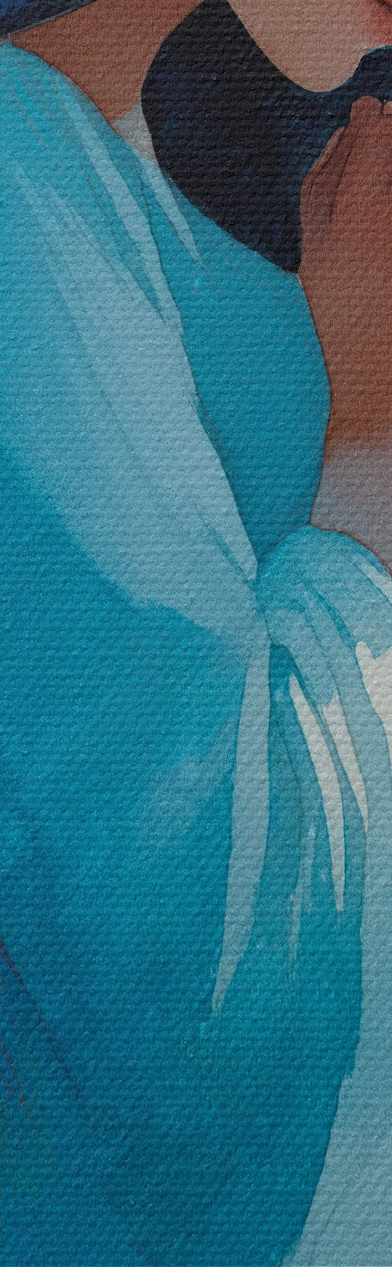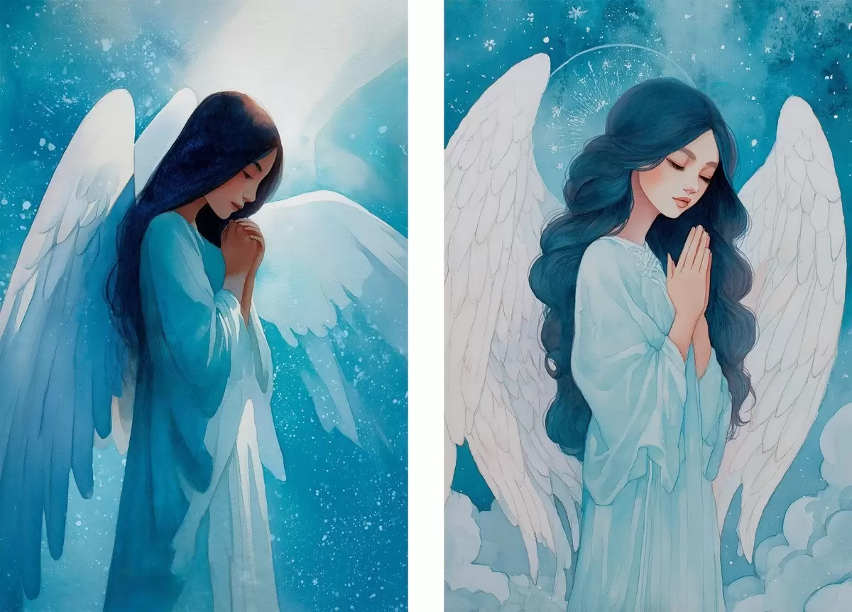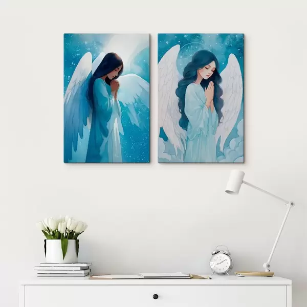 Obraz Moderné sakrálne umenie v akvarelovom štýle s obrazom anjela strážcu v modrých šatách Nr. m01153