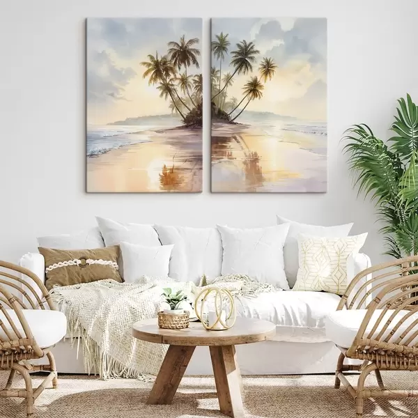 Obraz pláž pri západe slnka na ostrove v akvarelovom štýle Nr. m01177