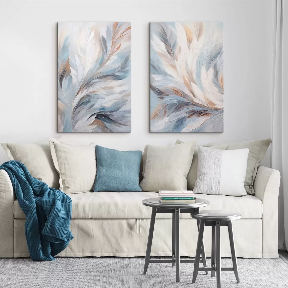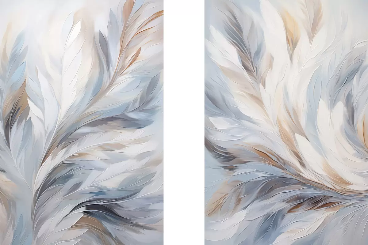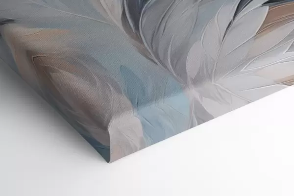 Obraz Abstraktná maľba pier v odtieňoch bielej, modrej a hnedej farby s jemnou, plynulou textúrou a svetlým pozadím. Nr. m01234