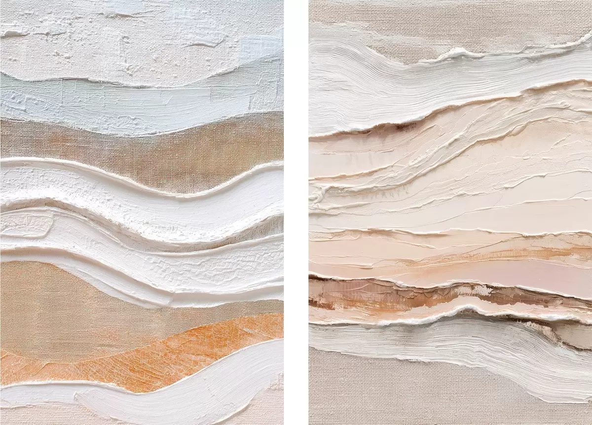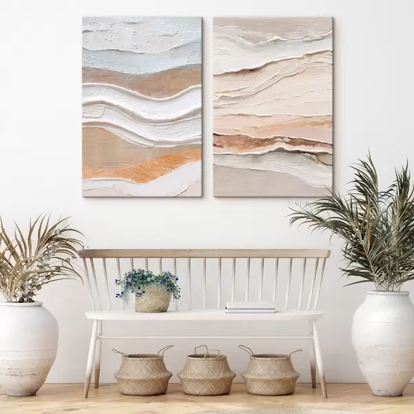 Obraz Minimalistický diptych s textúrovanými vlnami na ľanovom pozadí Nr. m30031