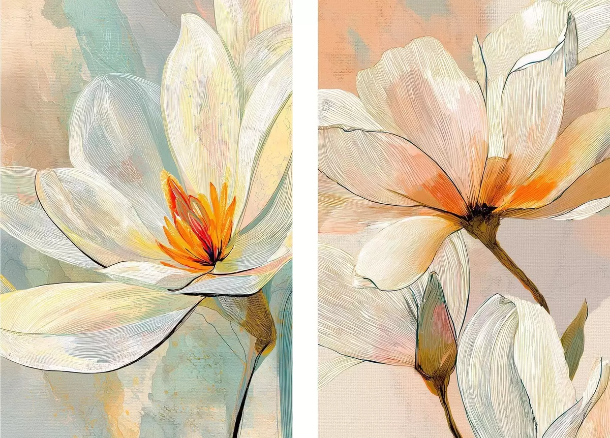 Obraz Magnólie s grafickými kontúrami v štýle modernej umeleckej ilustrácie Nr. m30032