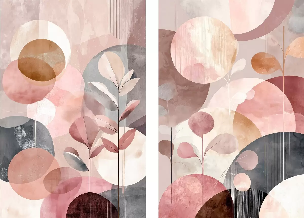 Obraz Kvetinové umenie v pastelových tónoch s geometrickými prvkami Nr. m30036