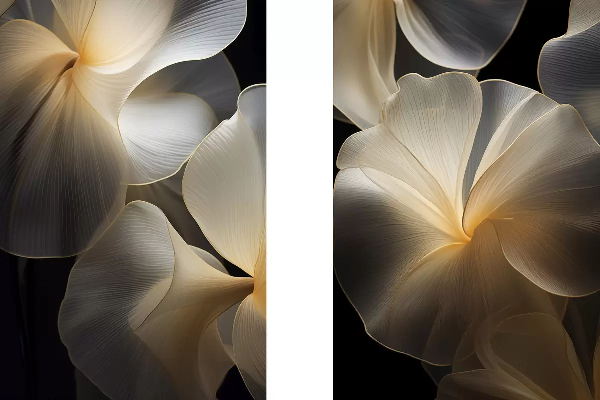 Obraz Abstraktné, vlajúce, priehľadné okvetné lístky s jemnými líniami na tmavom pozadí Nr. m30050