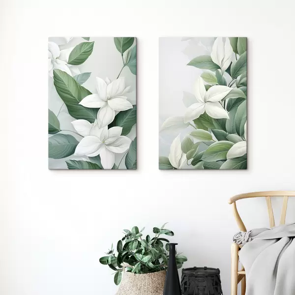 Obraz Biele kvety so zelenými listami, pastelové pozadie Nr. m30055