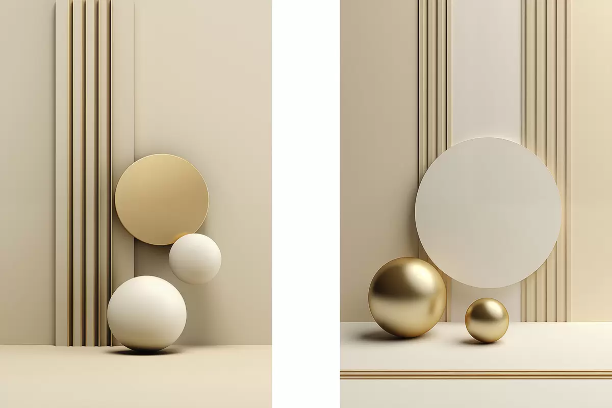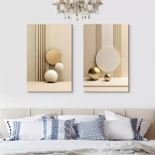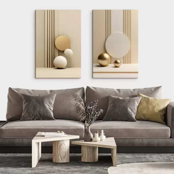 Obraz Abstraktné béžové moderné umenie s vertikálnymi čiarami a guľami Nr. m30056