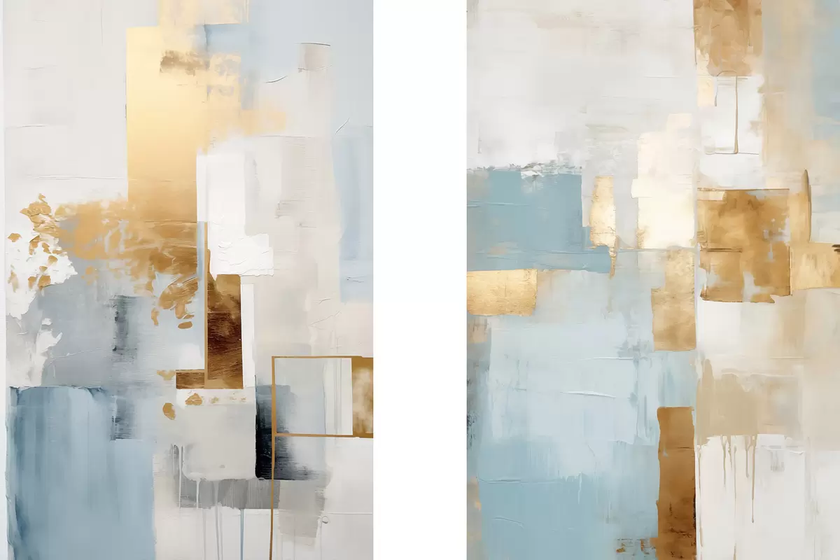 Obraz Abstraktné geometrické tvary v žltých, modrých a bielych farbách, textúrovaná a minimalistická kompozícia Nr. m30061