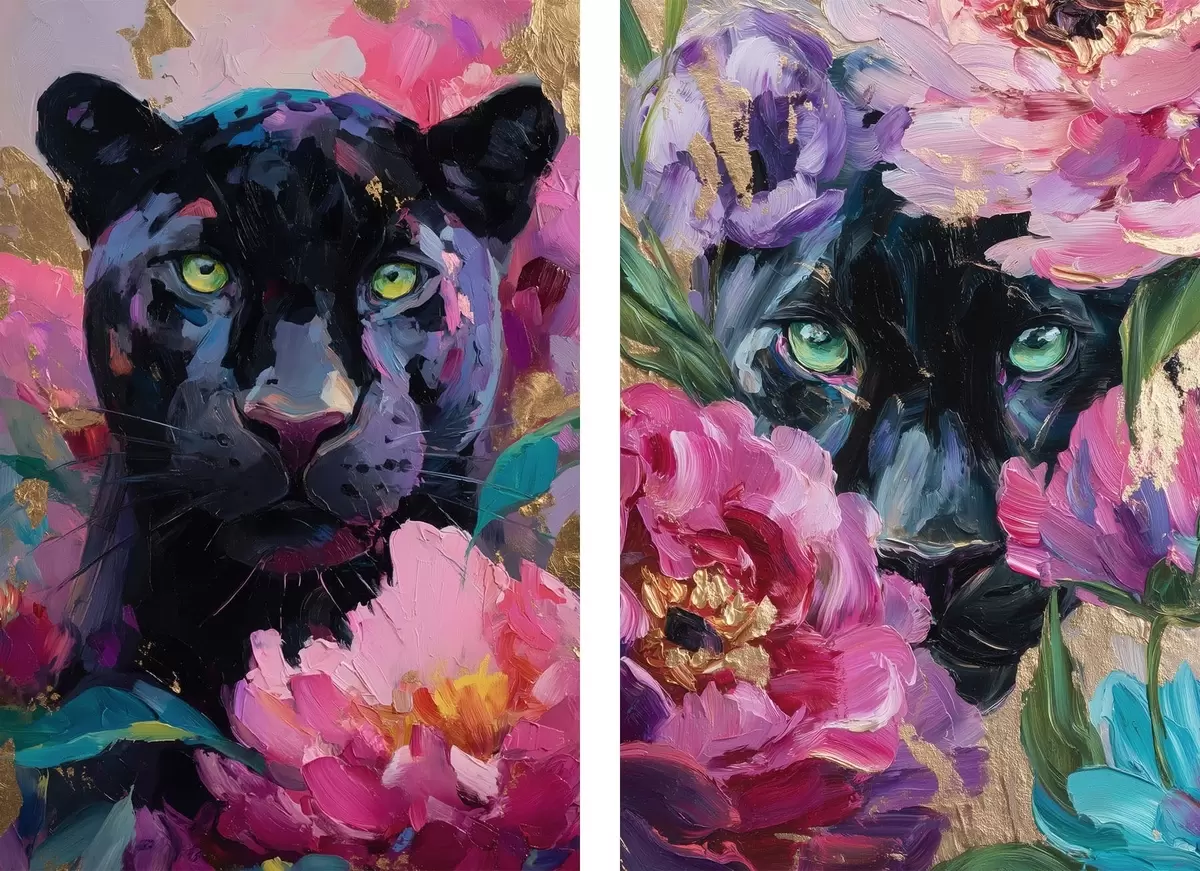 Obraz čierna pantera medzi pivóniami Nr. m30090