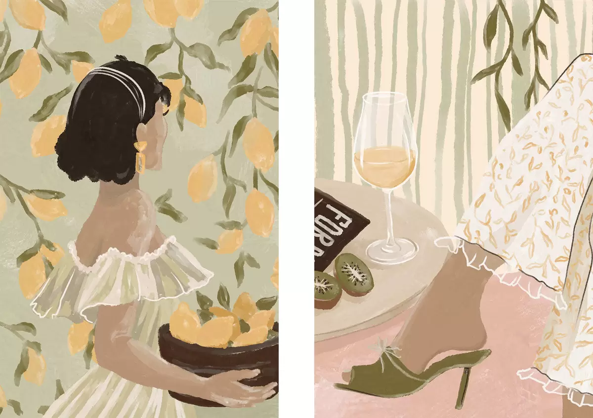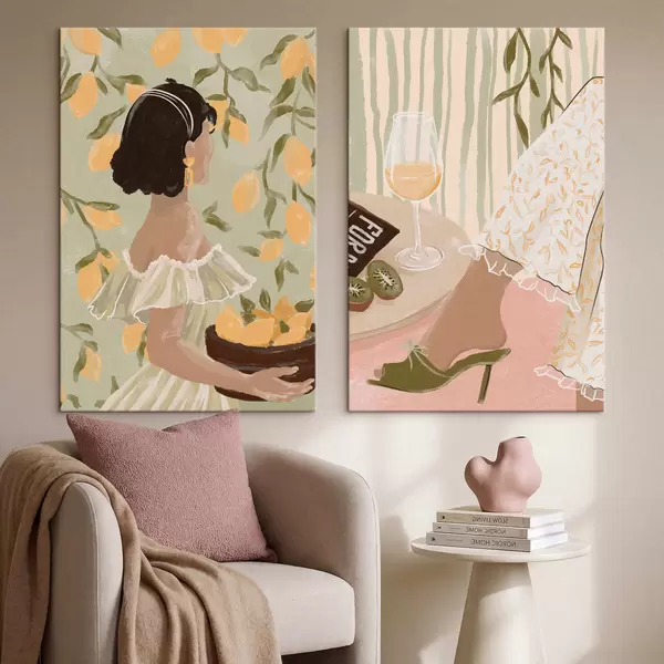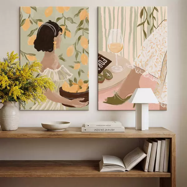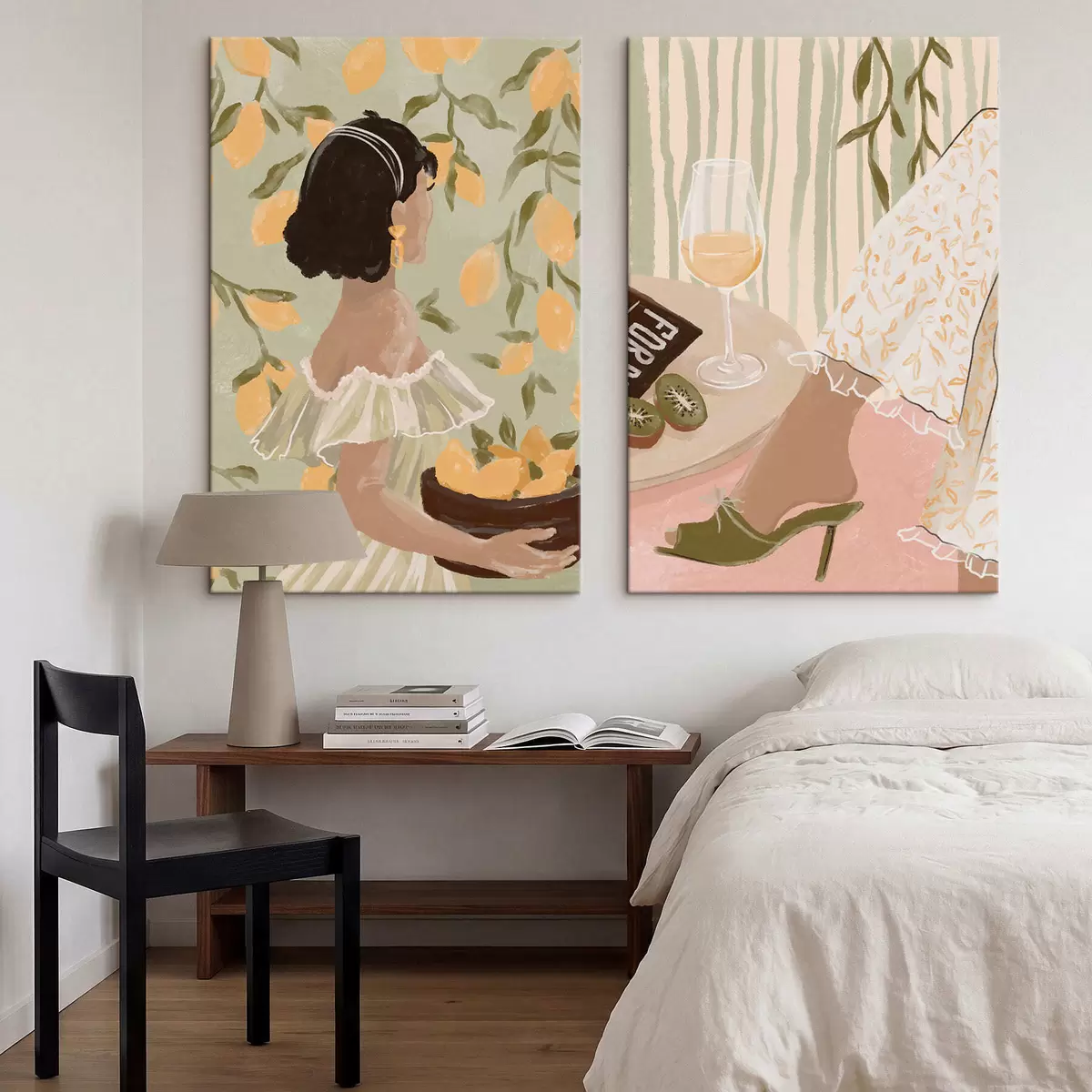 Obraz Žena s citrónmi a stolom so sklenenou doskou Nr. m30104