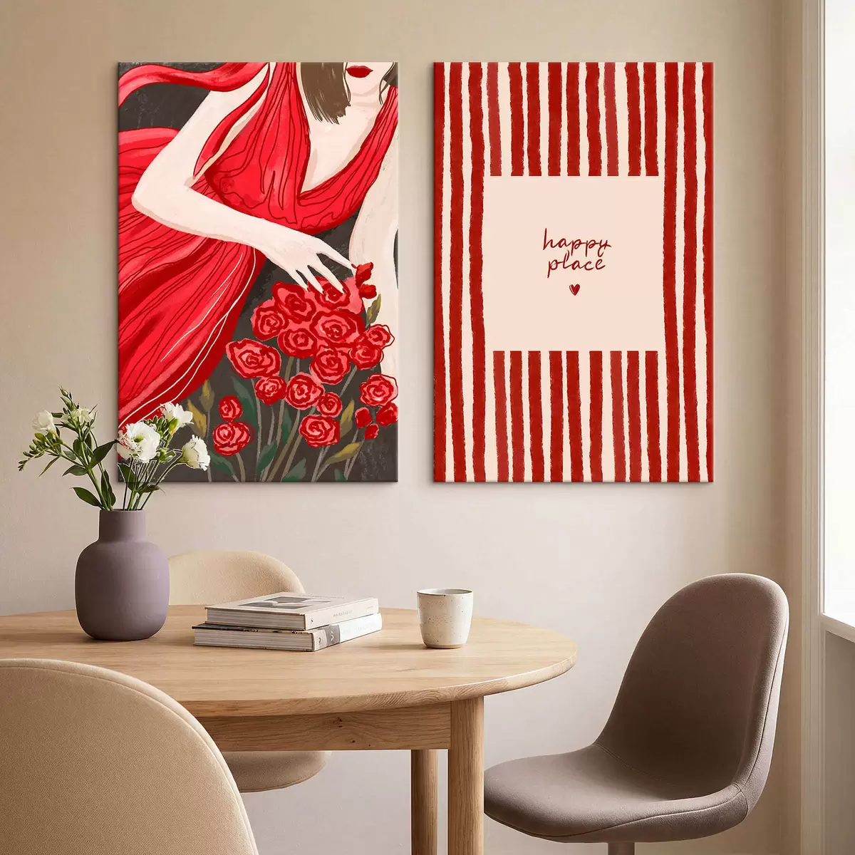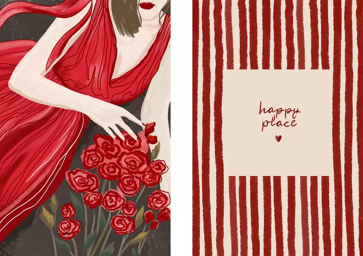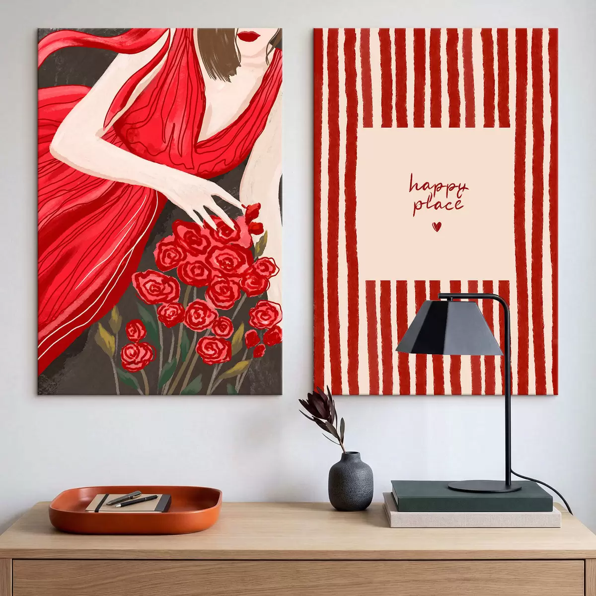 Obraz Žena s ružami a červeným vzorom Nr. m30107