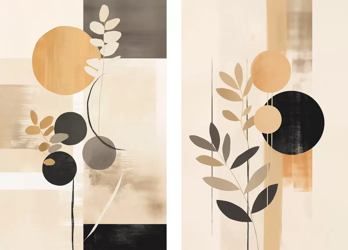 Obraz Abstrakcie s listami a kruhmi Nr. m30133