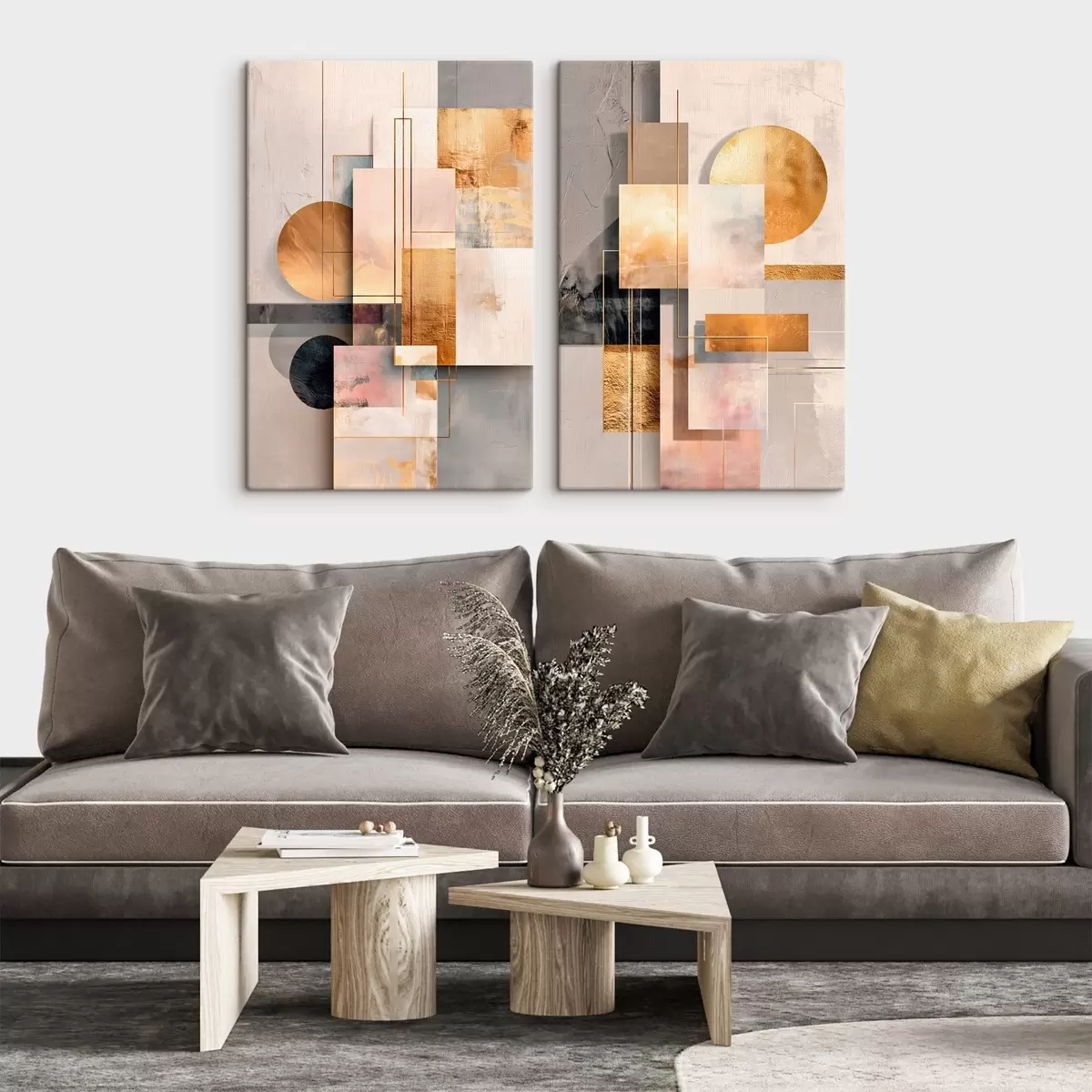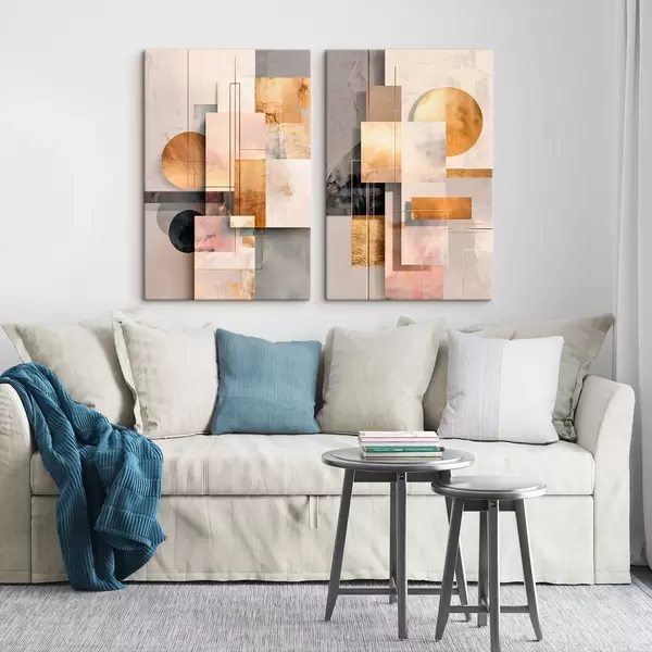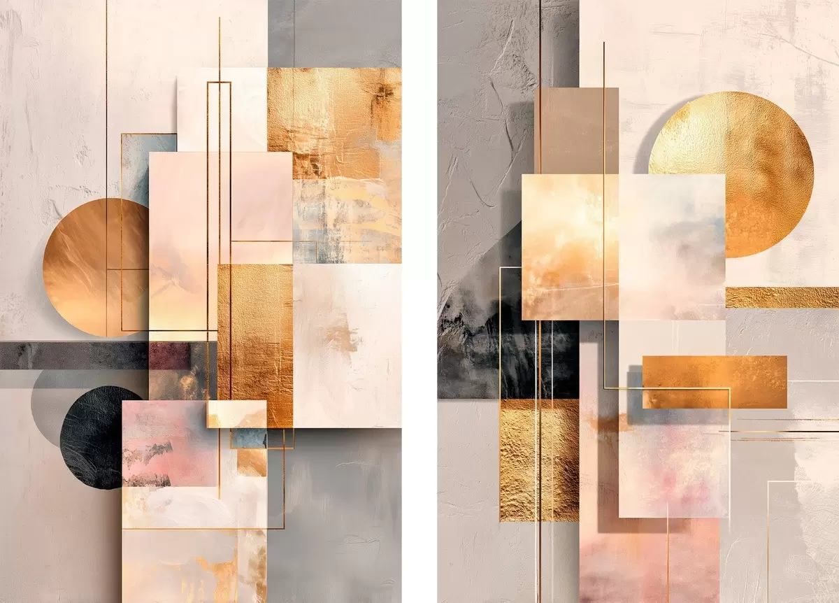 Obraz Geometrická abstrakcia s medenými a béžovými akcentmi v modernom grafickom štýle Nr. m30138