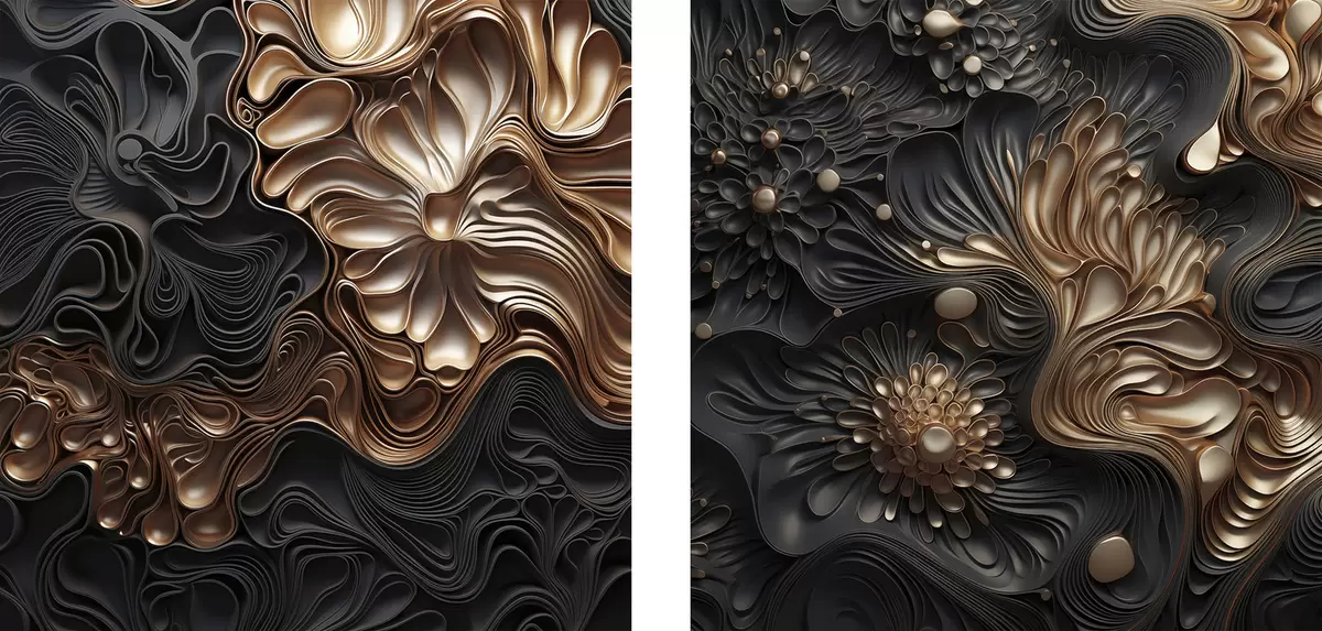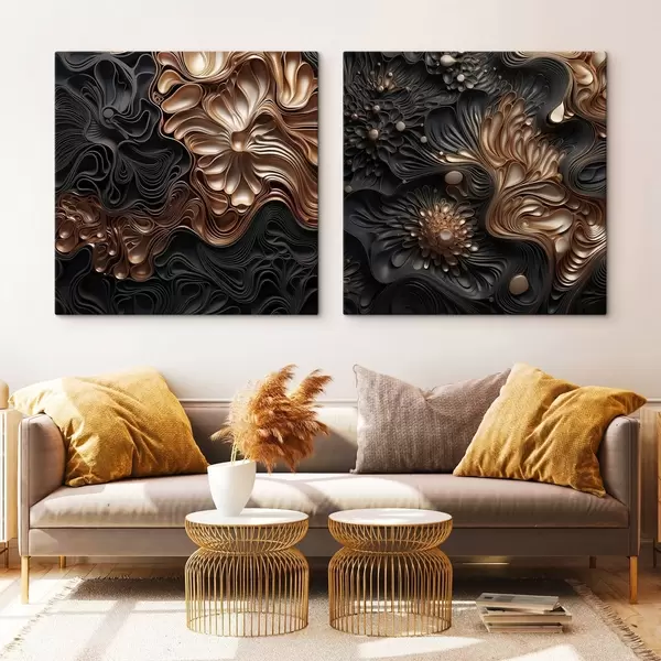 Obraz Abstraktné, plynulé, organické tmavé tvary, ktoré vytvárajú textúrované dielo moderného umenia Nr. m30196