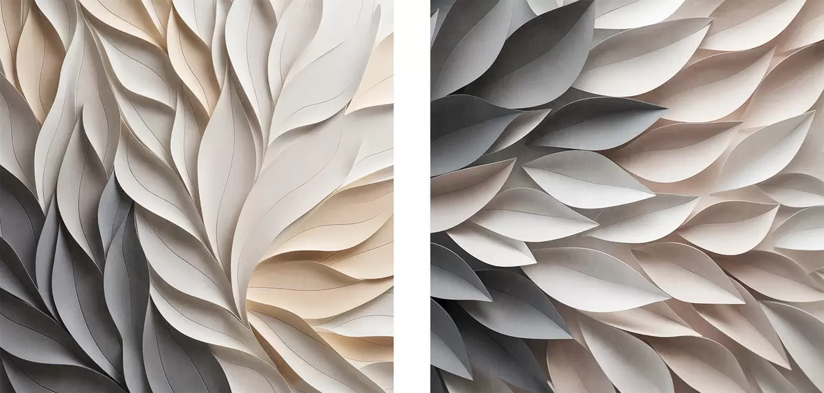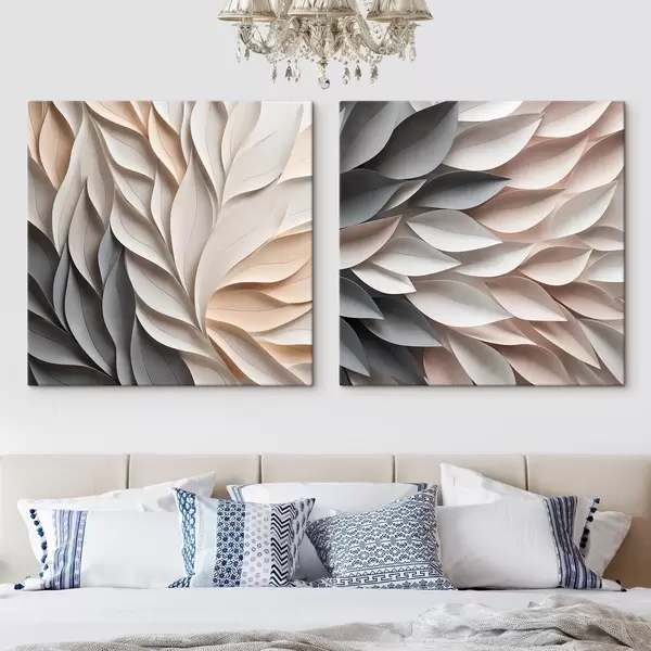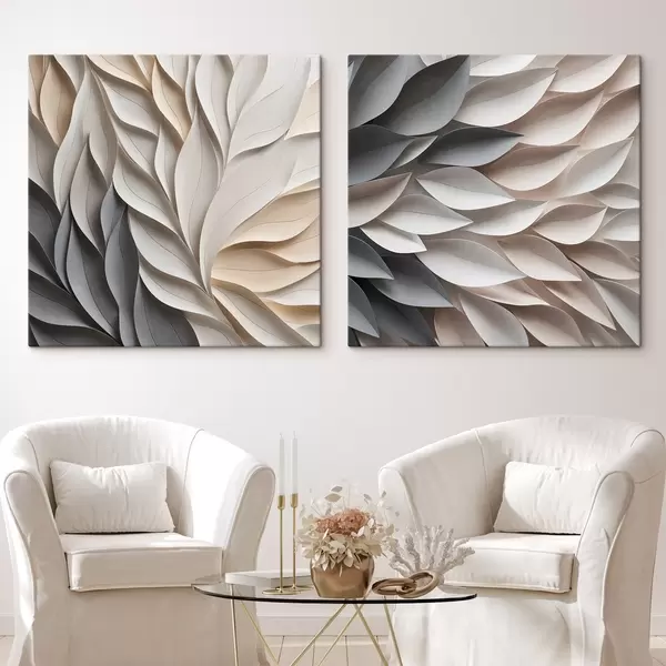 Obraz Textúrované, prekrývajúce sa abstraktné tvary listov v neutrálnych odtieňoch béžovej, smotanovej a šedej Nr. m30208