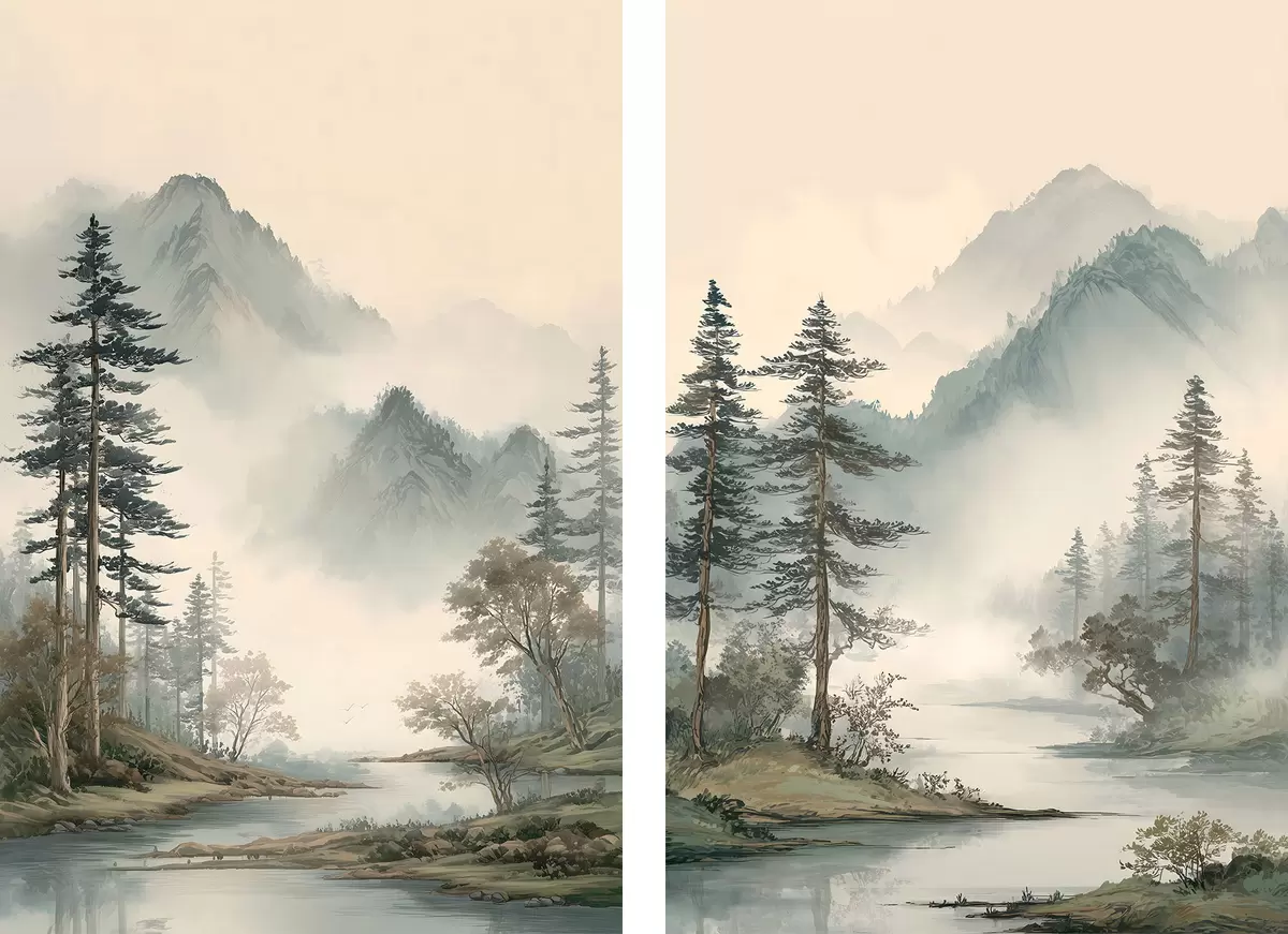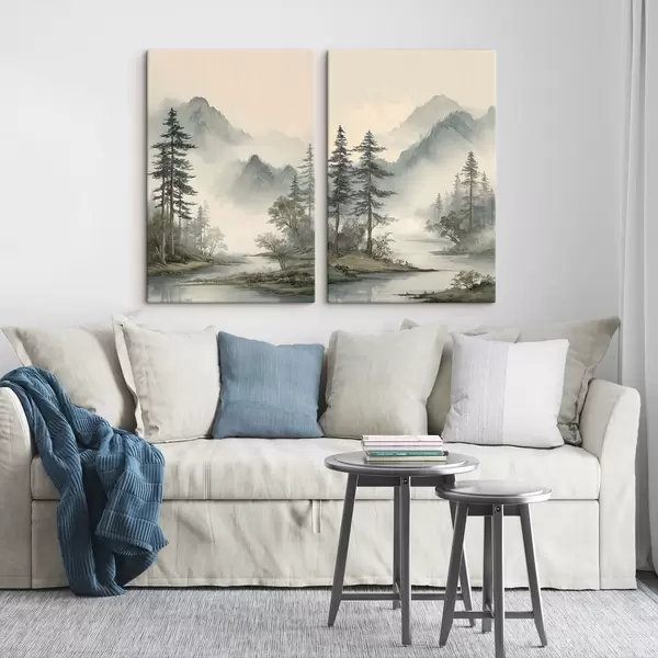 Obraz horská krajina s borovicami a riekou Nr. m30262