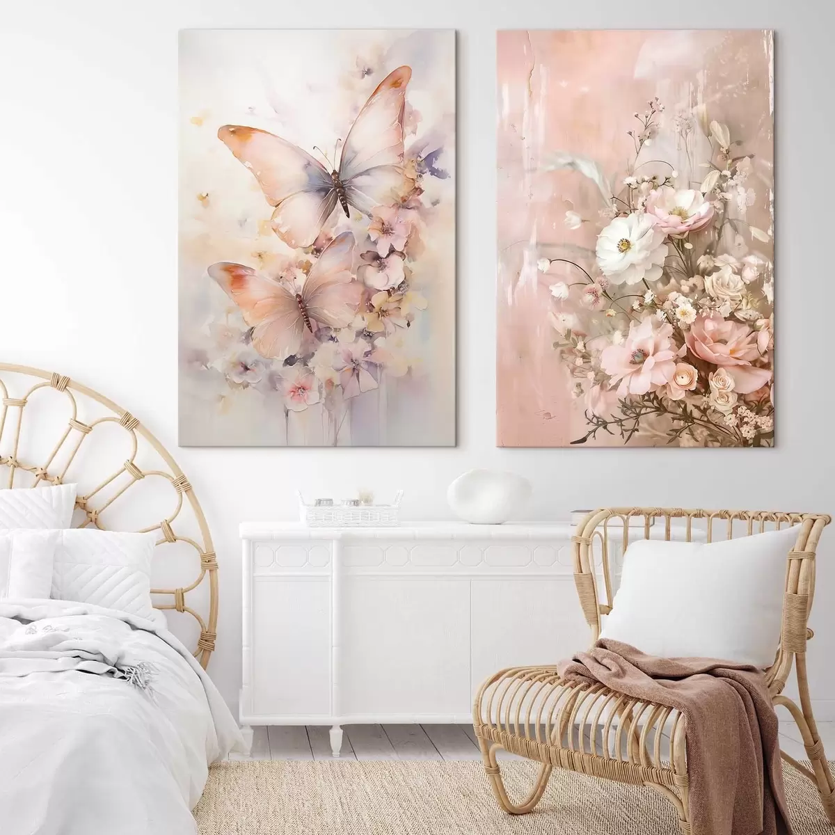 Obraz Kvety s motýľmi, jemný interiér Nr. m30267