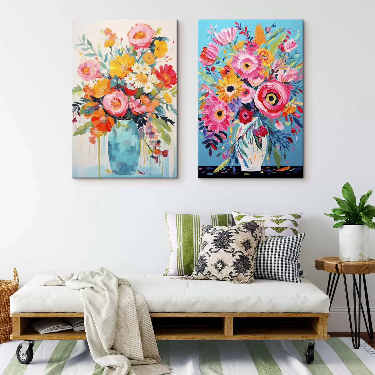 Obraz je možné zavesiť ihneď po jeho prevzatí. Obraz bude napnutý na drevených nosidlách so šírkou 2 cm.