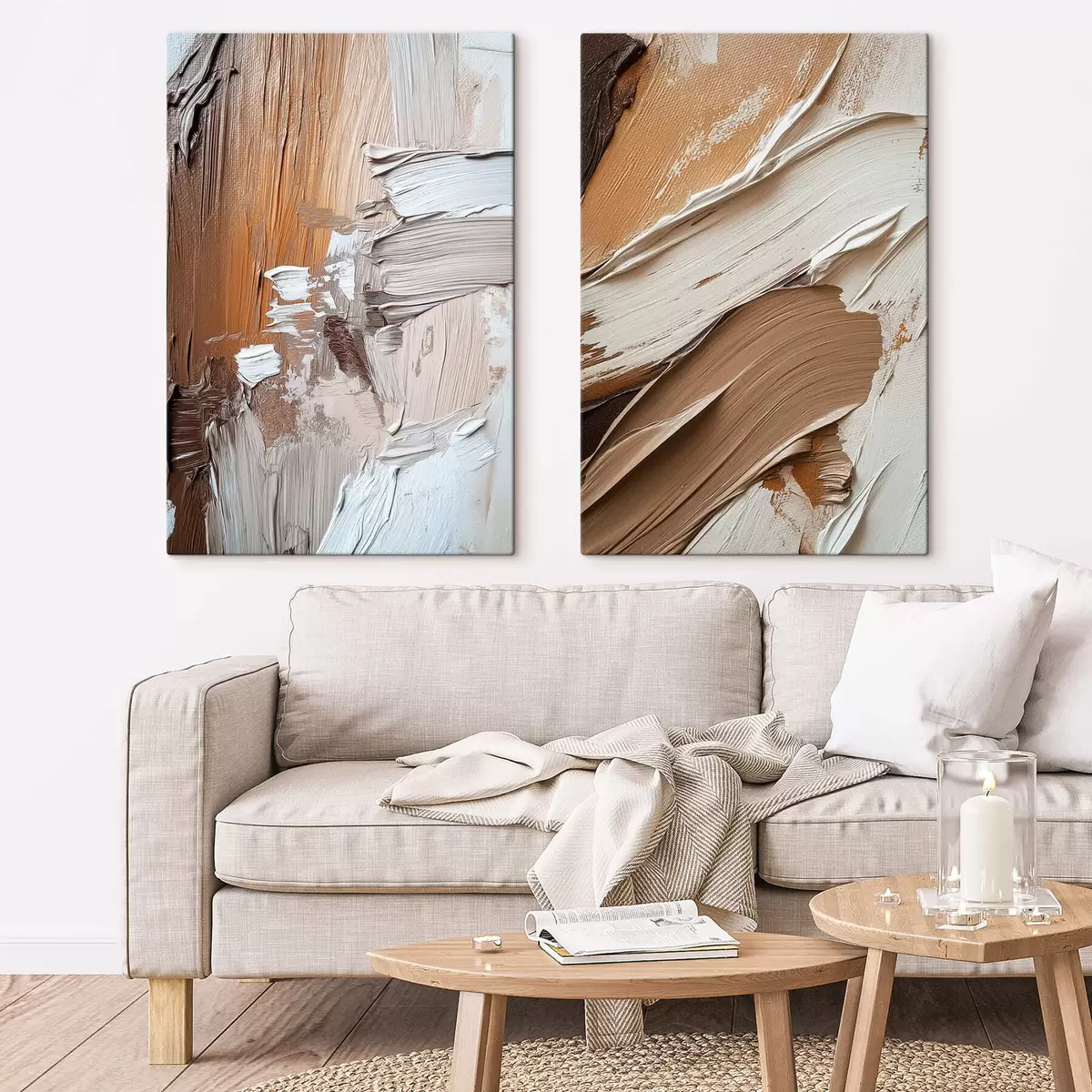 Na objednanie sú k dispozícii tri typy materiálu: Economic Canvas - hustý a odolný materiál na digitálnu tlač, identický s maliarskym plátnom, vodoodolný povrch, realistická reprodukcia detailov, stredne zrnitý materiál. Premium Canvas - štruktúra pripomína maliarske plátno (prepletené drobné vlákna). Mäkká, detailná reprodukcia obrazu na matnom povrchu. Eco-Premium - vysokokvalitná tkanina zo 100 % bavlny. Vďaka prírodným bavlneným vláknam je materiál trvanlivý a odolný voči opotrebovaniu. Vynikajúca reprodukcia farieb a detailov.