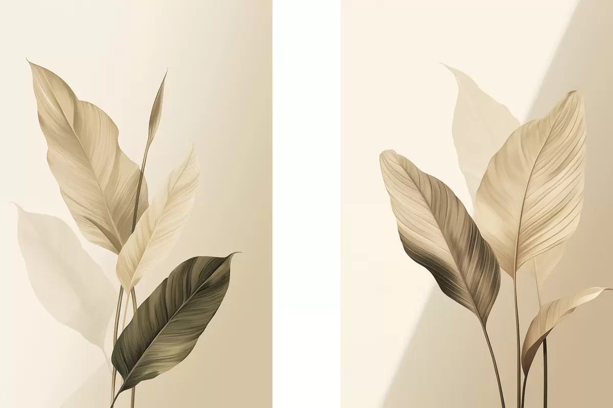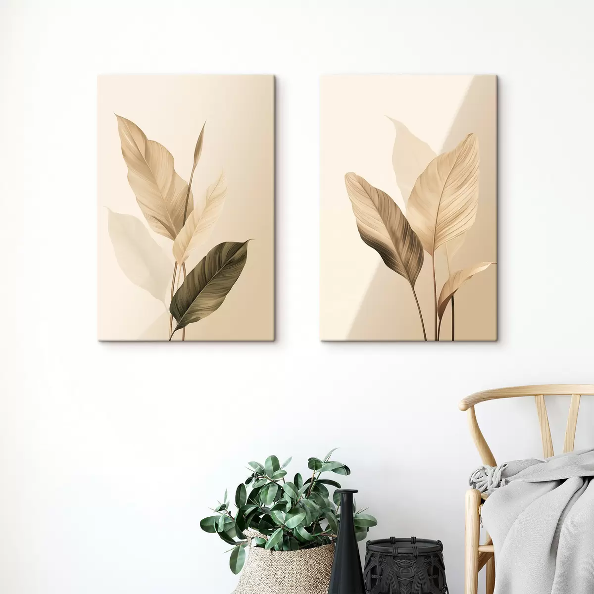 Obraz Veľké tropické listy v odtieňoch béžovej a hnedej, svetlé pozadie Nr. m30313