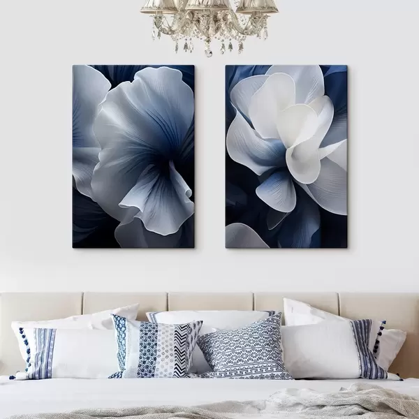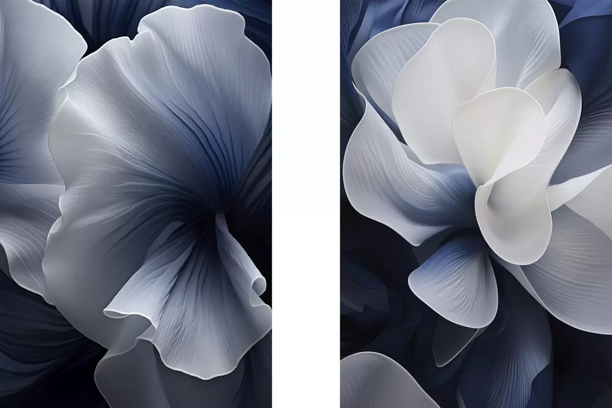 Obraz Abstraktné modro-biele okvetné lístky na tmavom pozadí Nr. m30316