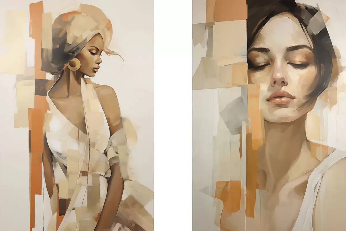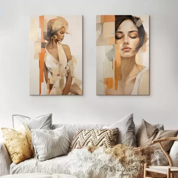Obraz Abstraktný portrét ženy s oranžovými a béžovými tvarmi Nr. m30318