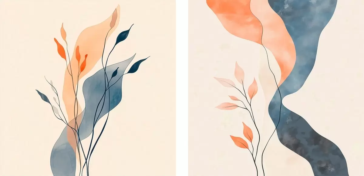 Obraz Dekoratívne vetvičky s jemnými čiarami v modernom maliarskom štýle Nr. m30346