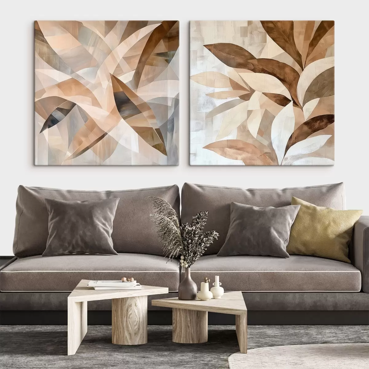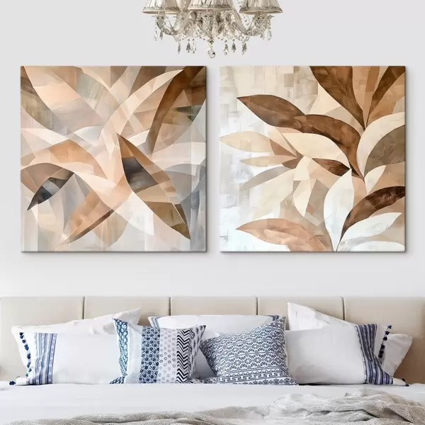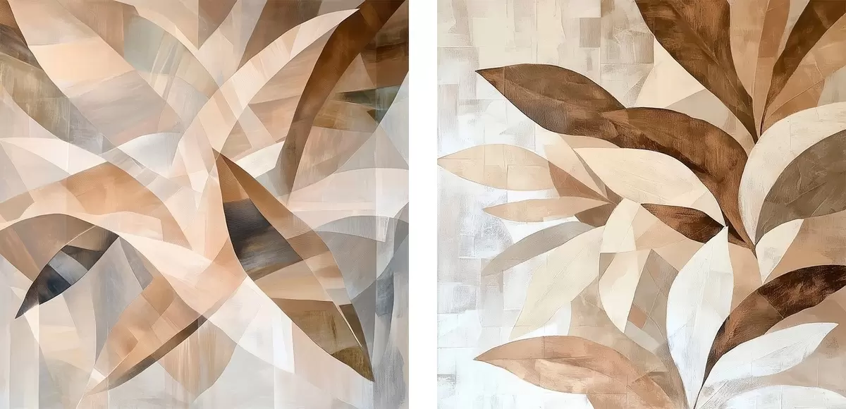Obraz Štýlizovaná zeleň v teplých pieskových odtieňoch v modernom štýle interiérových ilustrácií Nr. m30350