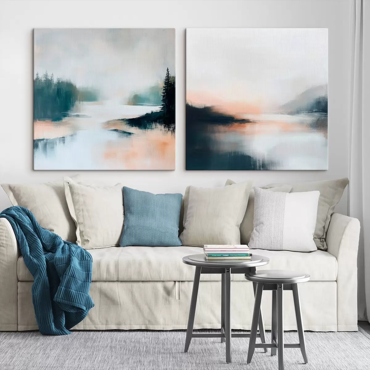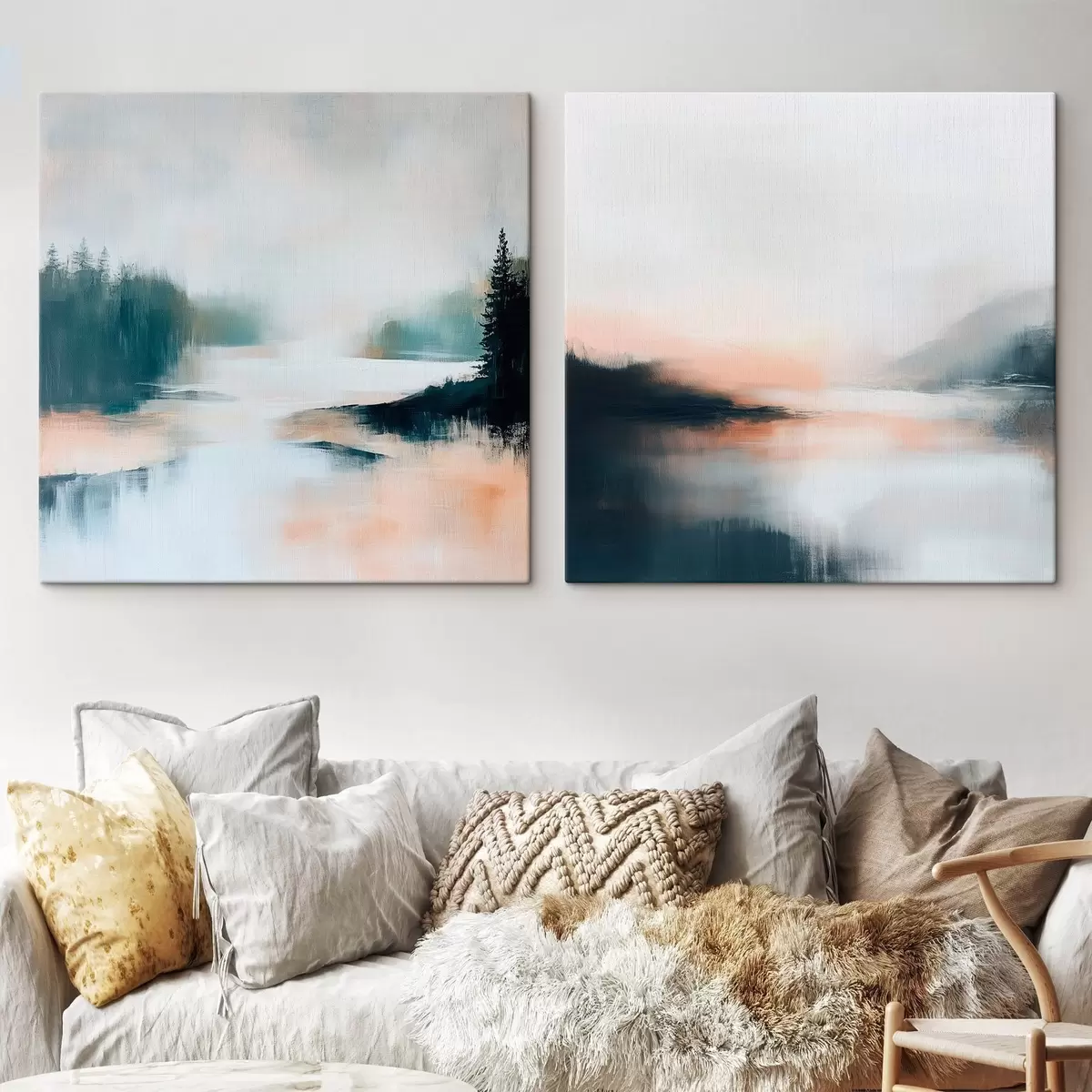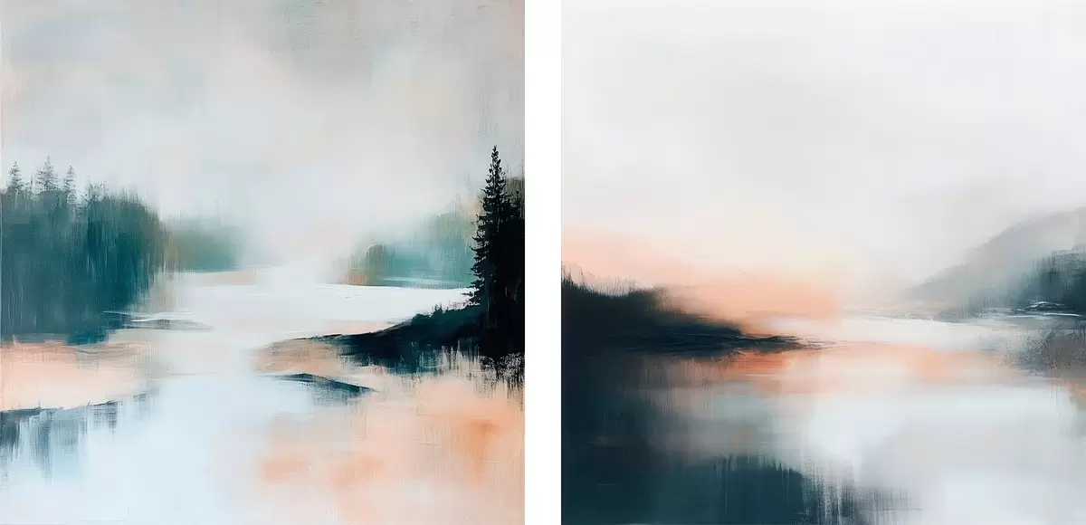 Obraz Zamračená krajina s ihličnatými stromami a jazerom v modernom maliarskom štýle Nr. m30357