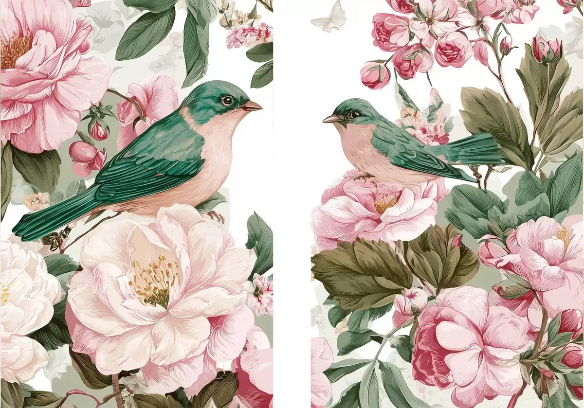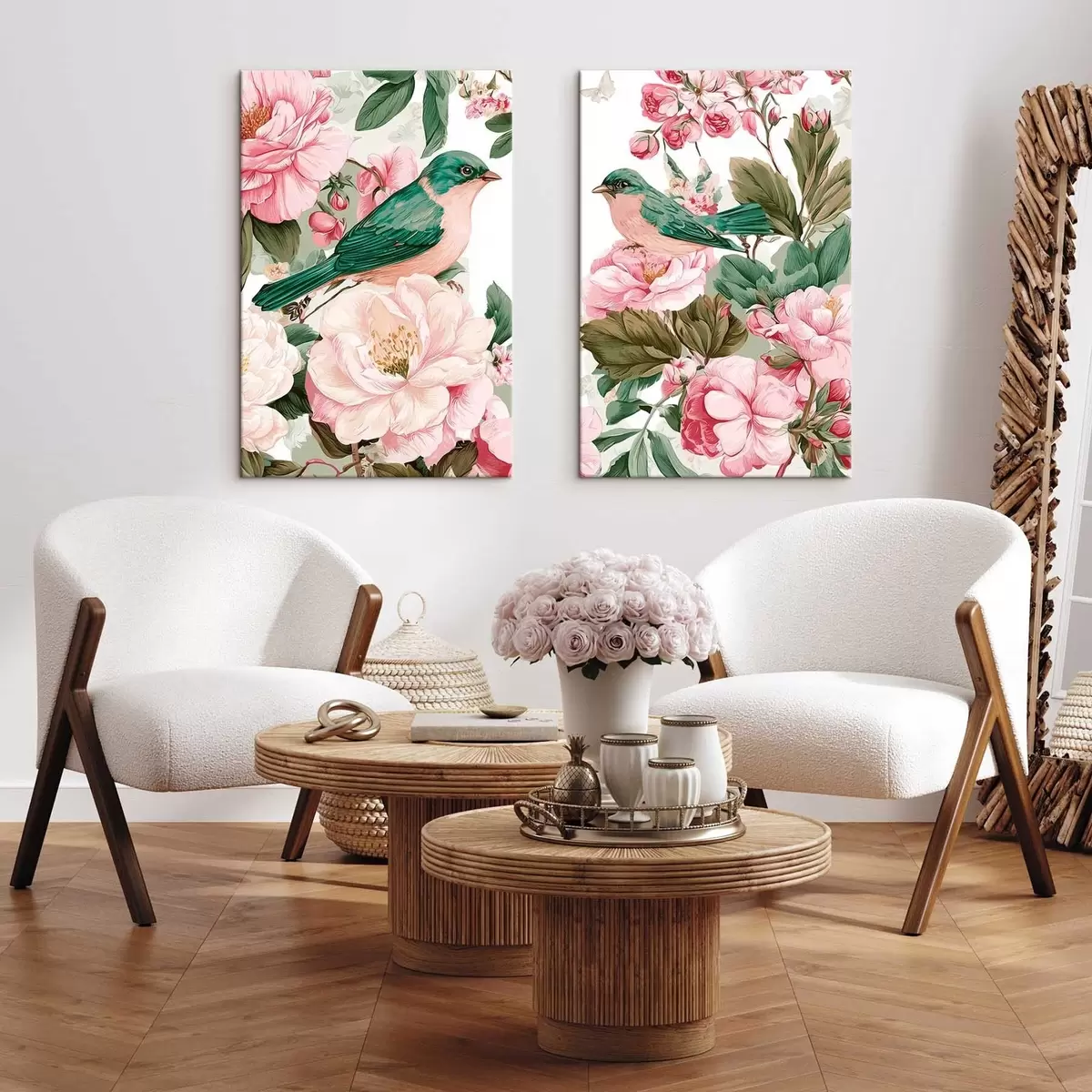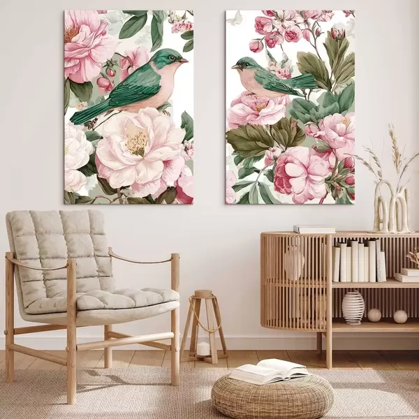 Obraz Vtáky na jemných ružových kvetoch Nr. m30386