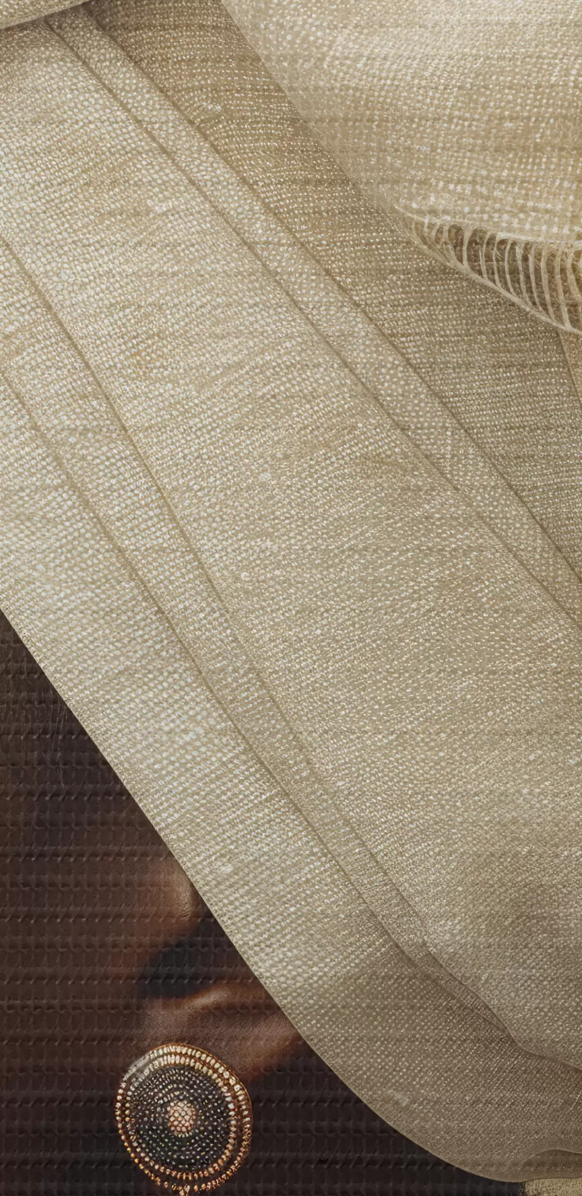 Obraz béžový portrét ženy v africkom štýle z profilu s veľkými náušnicami Nr. s26120