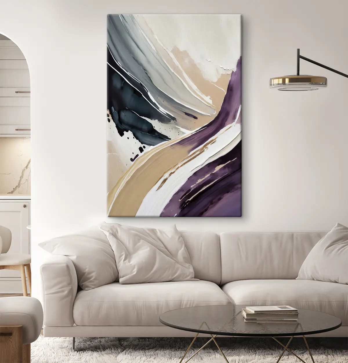 Obraz Abstraktné akrylové umenie, ťah štetcom, textúra farby, béžová, fialová, modré farby Nr. s36504