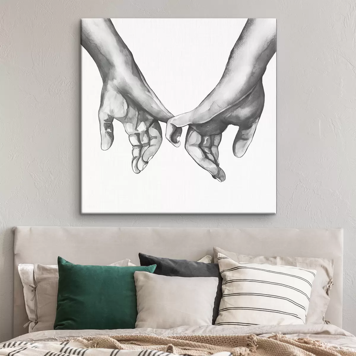 Obraz Čiernobiele držanie sa za ruky na bielom pozadí Nr. s36848