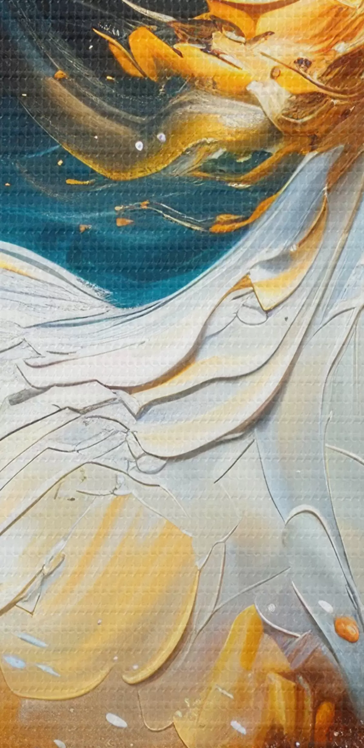 Obraz je možné zavesiť ihneď po jeho prevzatí. Obraz bude napnutý na drevených nosidlách so šírkou 2 cm.