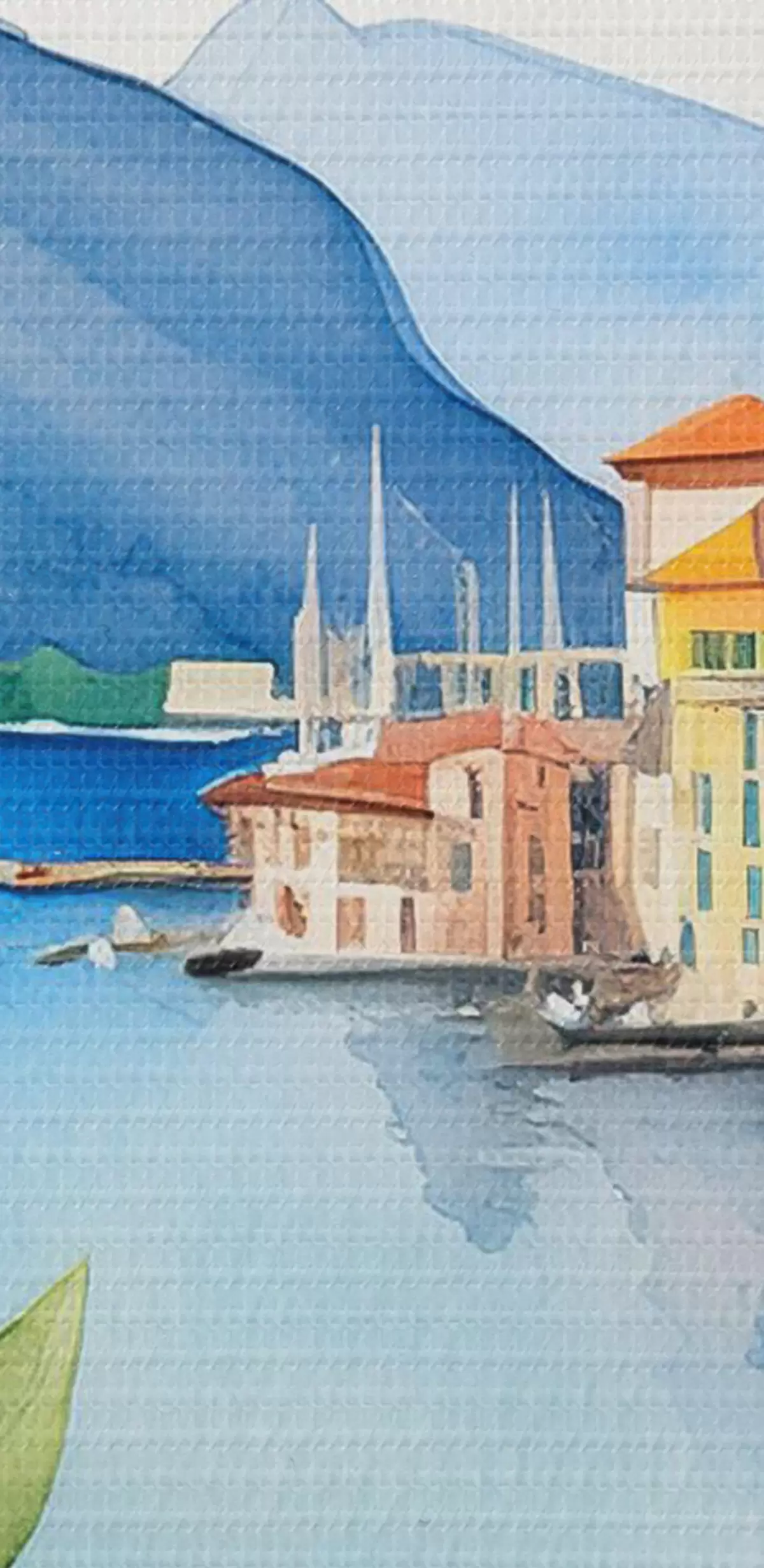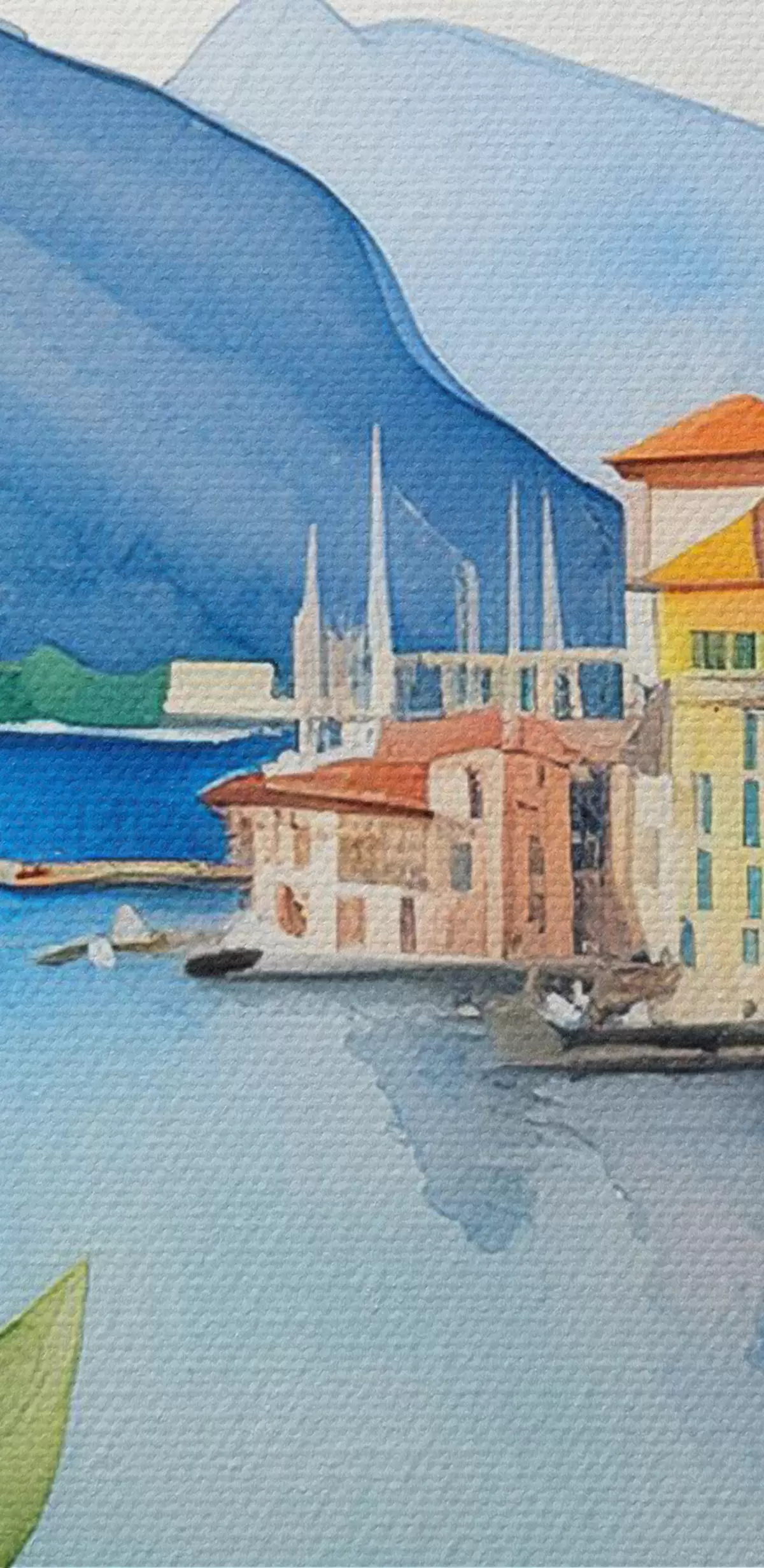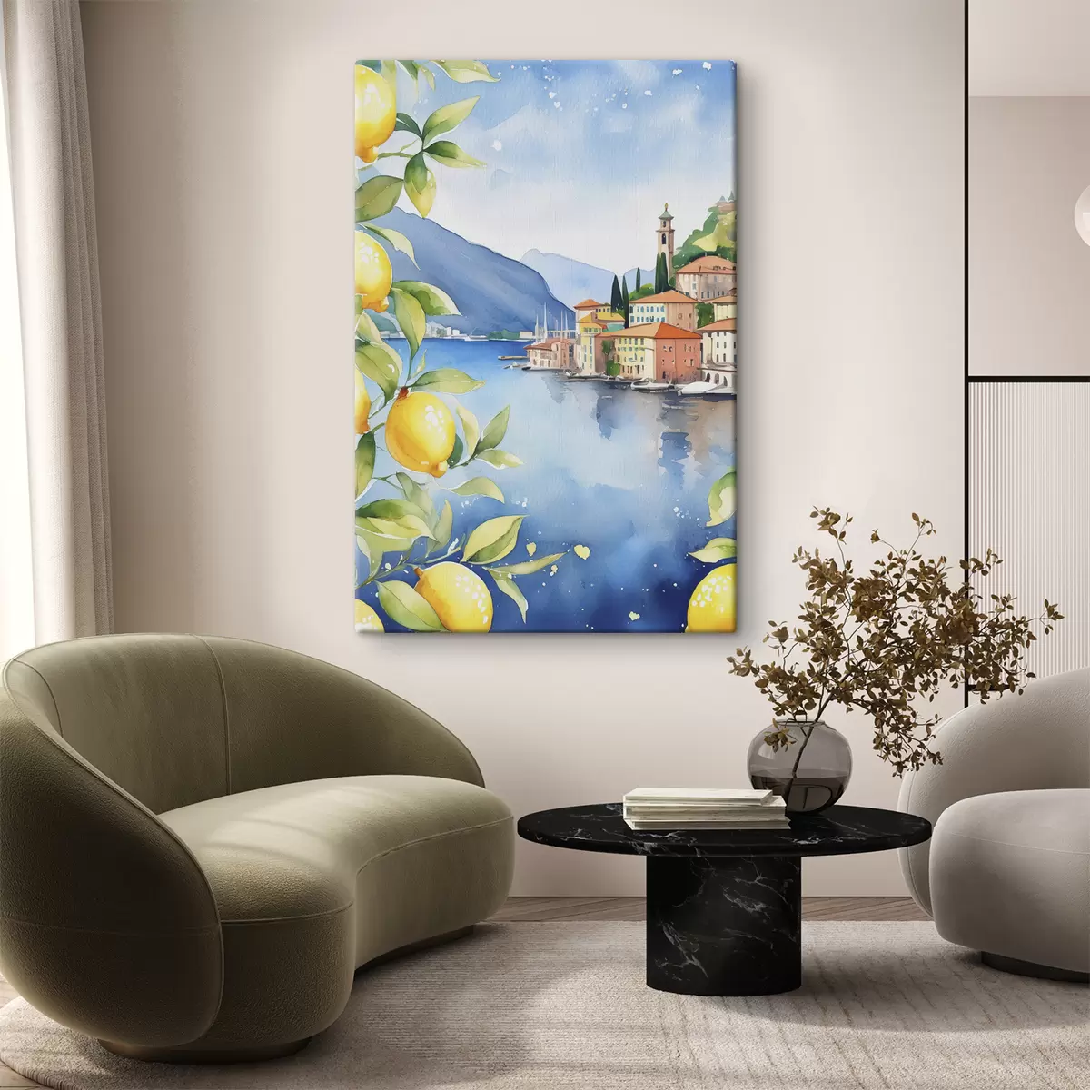 Obraz Talianske jazero, leto, akvarel, prírodná krajina, citróny, mestská architektúra Nr. s38397