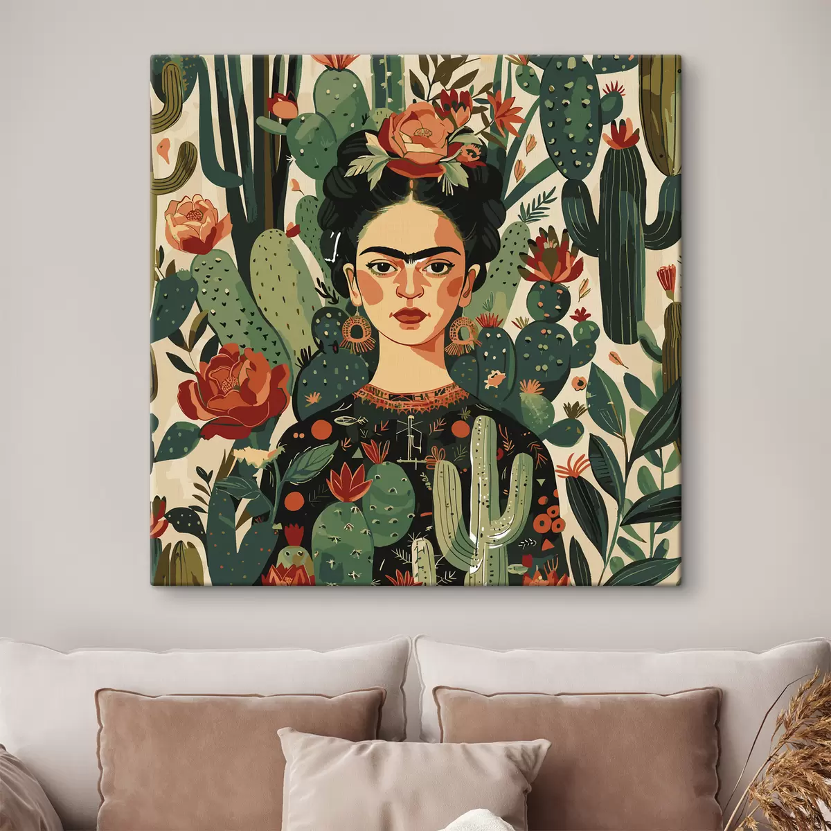 Obraz Frida v kaktusoch v zelenom štýle Nr. s38415