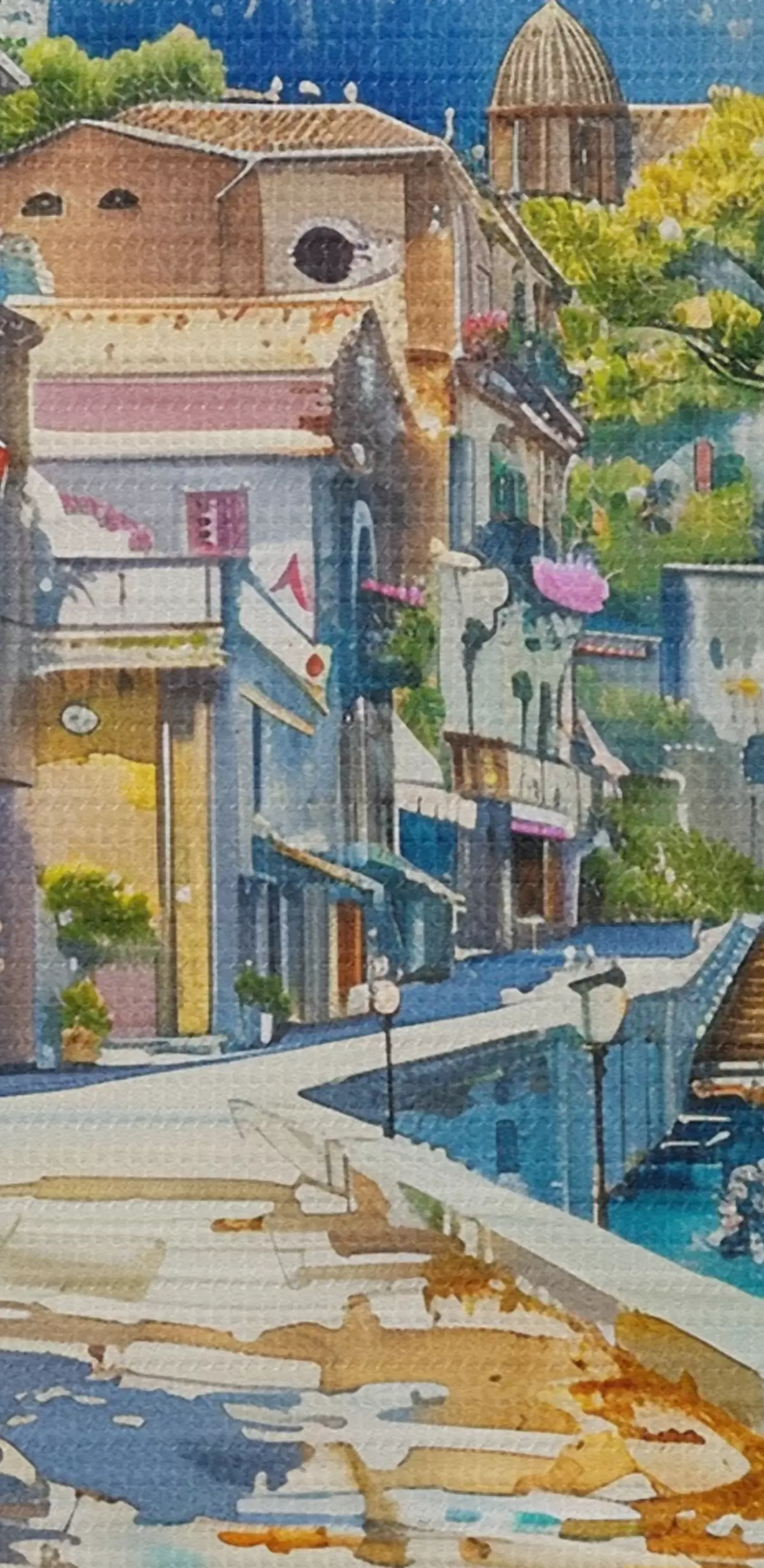 Obraz je možné zavesiť ihneď po jeho prevzatí. Obraz bude napnutý na drevených nosidlách so šírkou 2 cm.