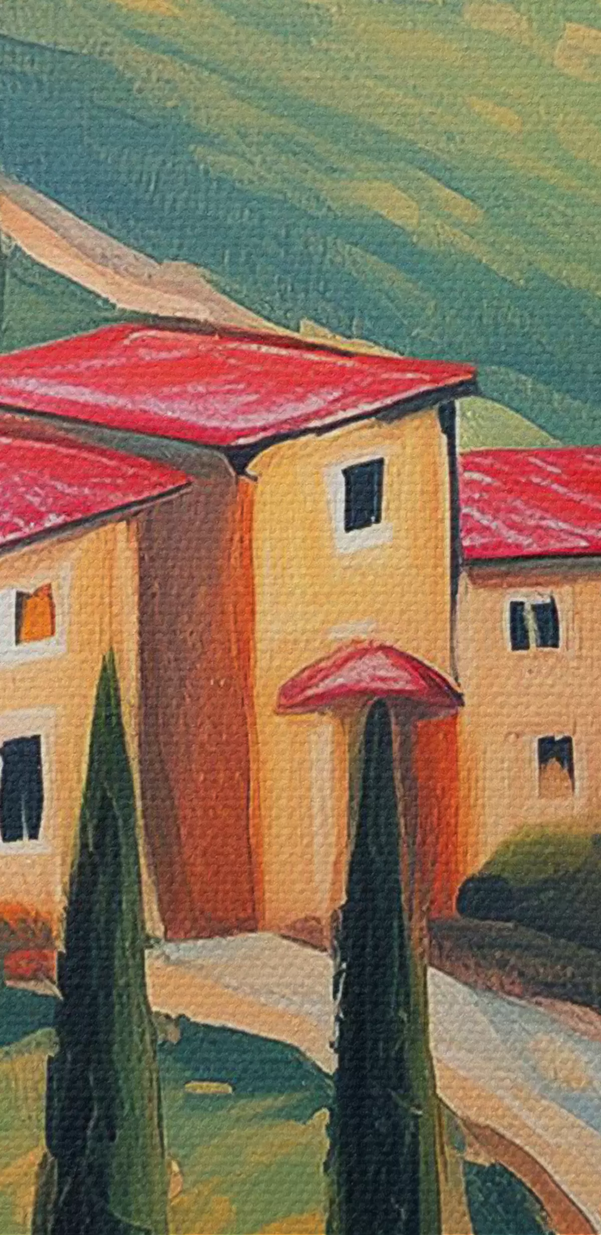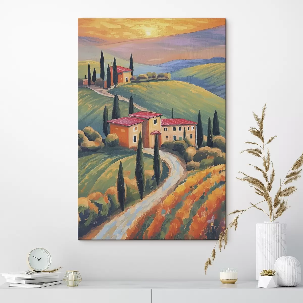 Obraz Toskánska krajina, Taliansko, akrylové umenie, staré domy, polia, leto Nr. s38488
