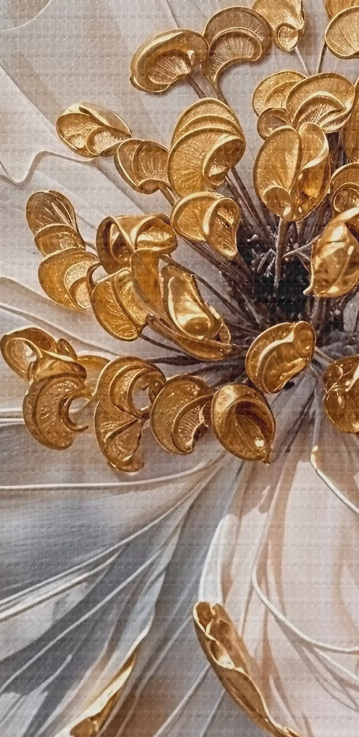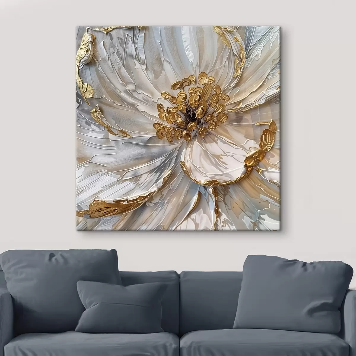 Obraz Detailný záber na veľký biely kvet so žltými tyčinkami v strede, umelecký dekor olejomaľby Nr. s38755