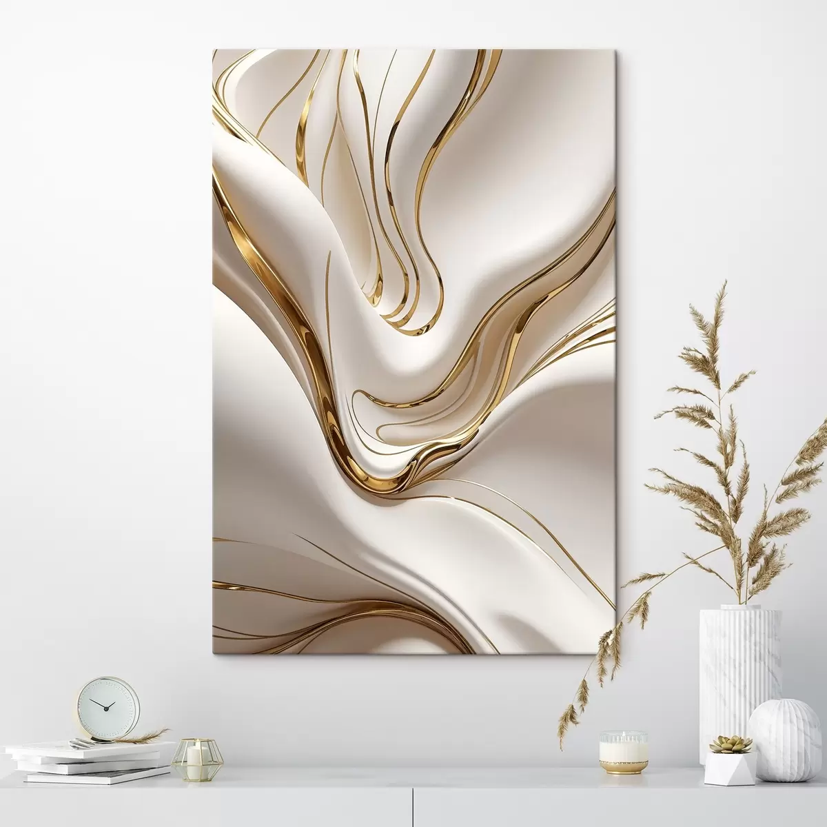Obraz Tečúce biele abstraktné tvary, pripomínajúce tekutý alebo roztavený kov, dynamická kompozícia Nr. s38767