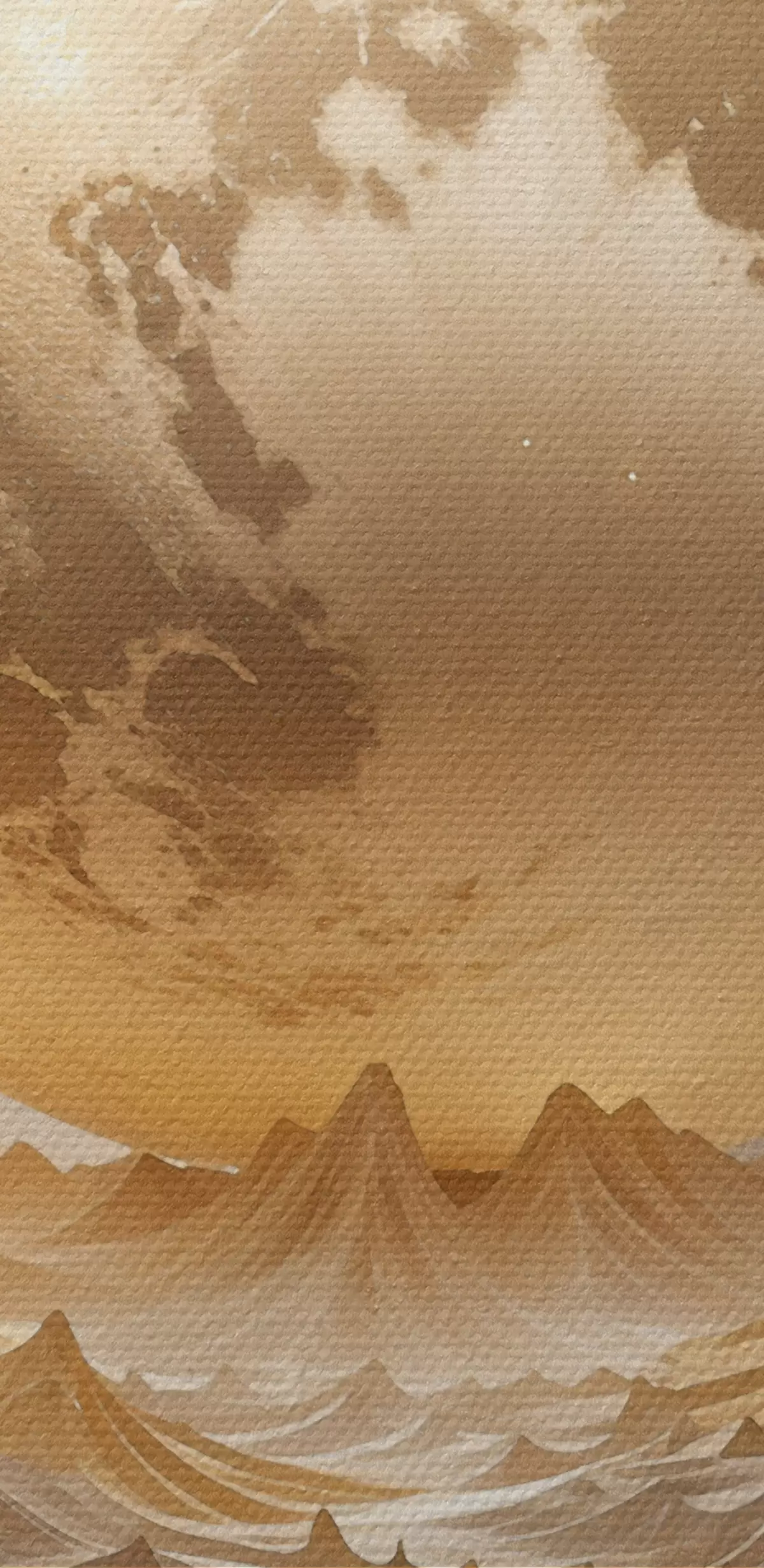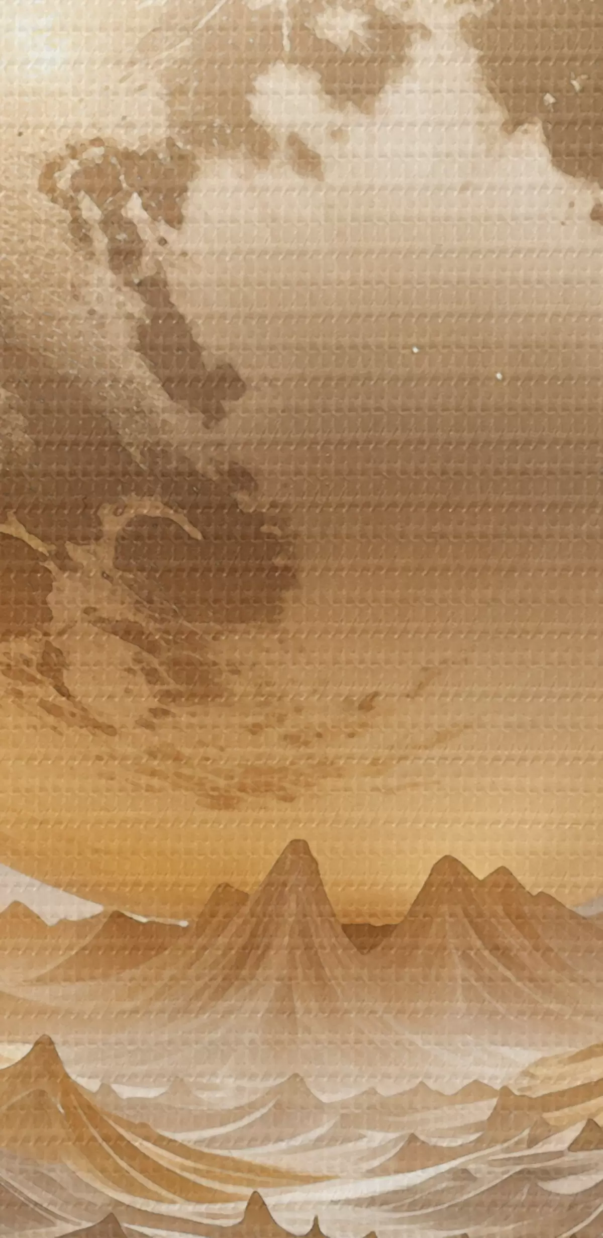 Obraz Žiariaci zlatý spln nad neskutočnou hornatou krajinou so zlatými štítmi Nr. s38775