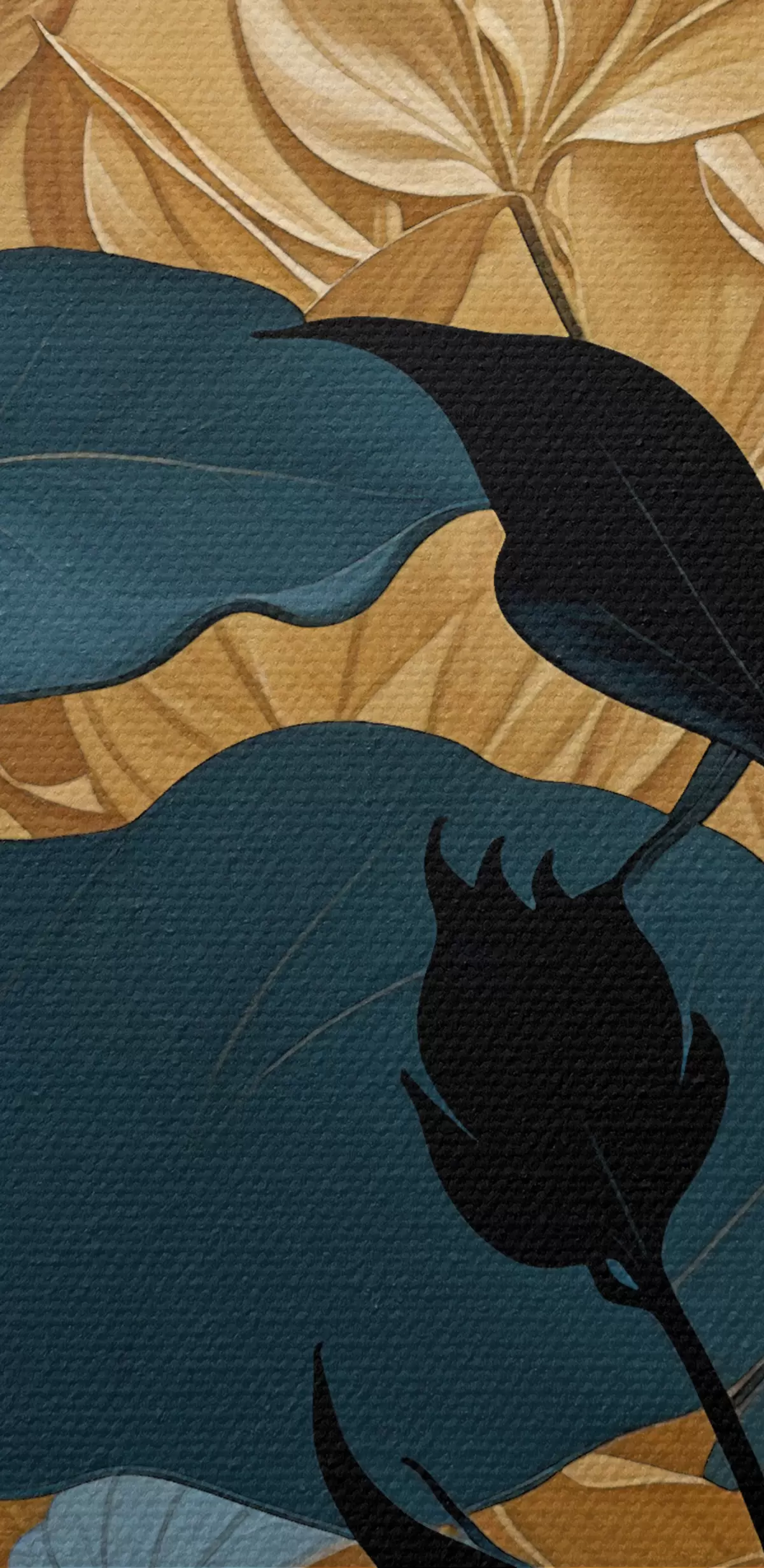 Obraz Abstraktna cvetlična kompozicija z velikimi listi in temnimi silhuetami Nr. s38822
