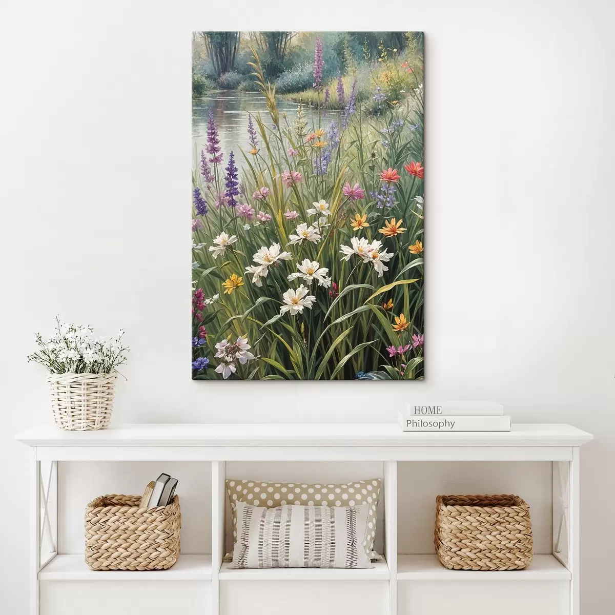 Obraz Poľné kvety a vysoké trávy. Celková scéna zobrazuje živú prírodnú krajinu Nr. s38829