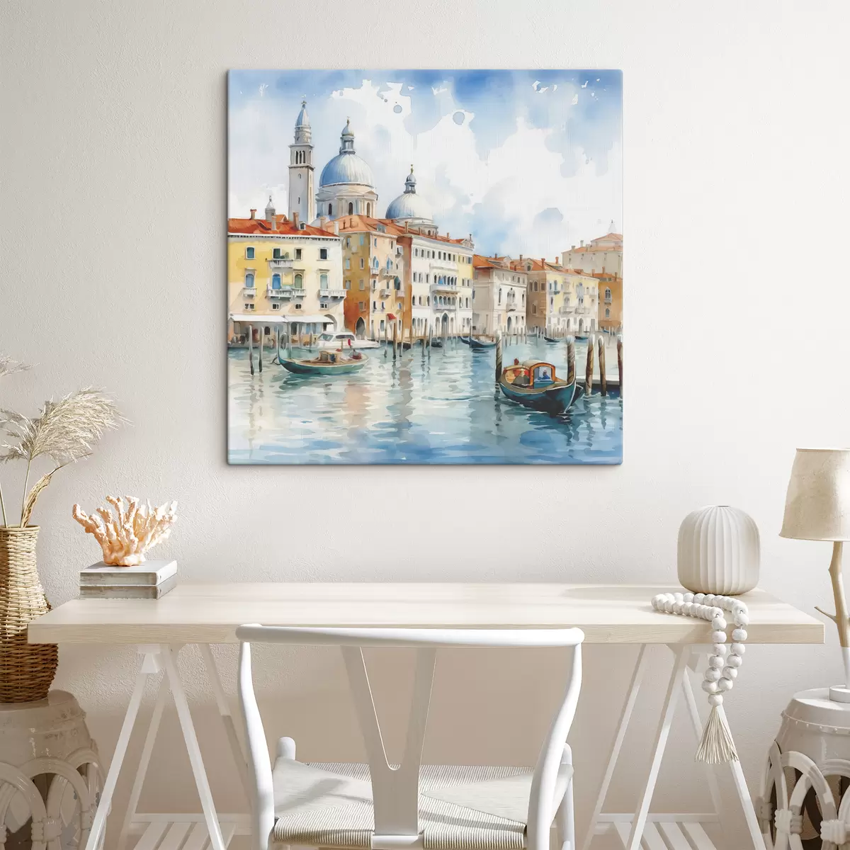 Obraz Akvarel krajina Benátky, záliv, rieka, architektúra, krajina, lode, gondola Nr. s38908