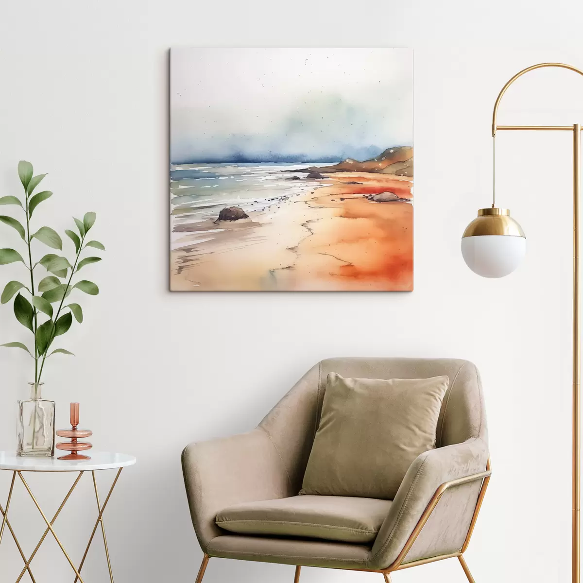 Obraz More a pláž, dážď, akvarel, špliechanie, krajina, krajina, modrá, oranžová farba Nr. s38936