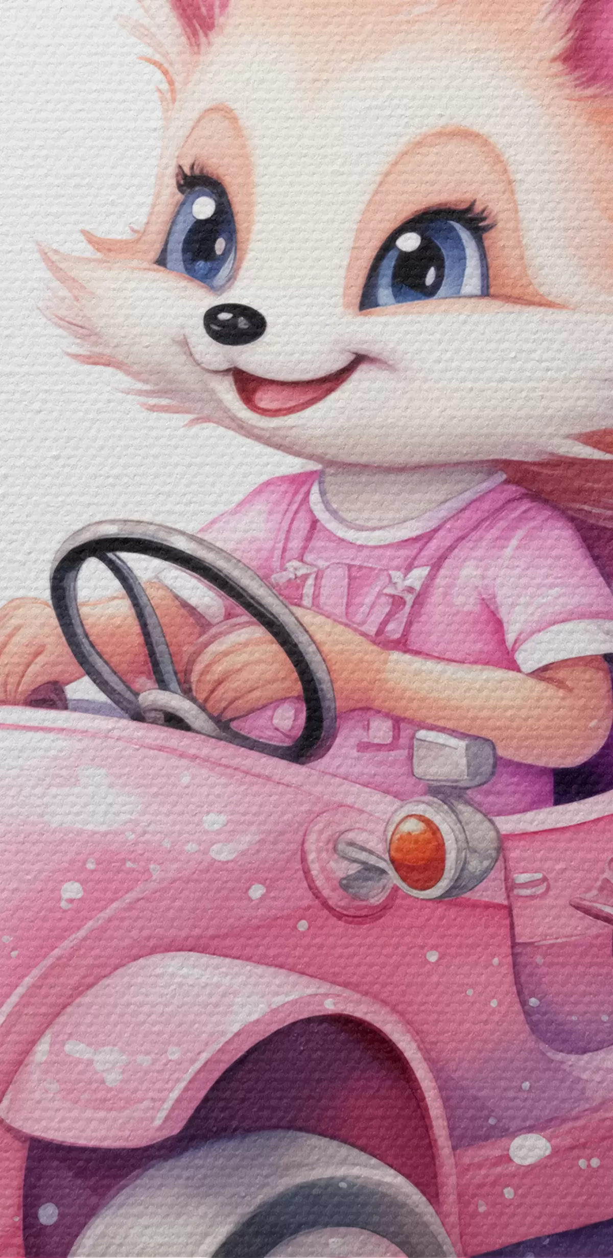 Obraz Líška jazdí na ružovom aute detská akvarelová ilustrácia Nr. s38943
