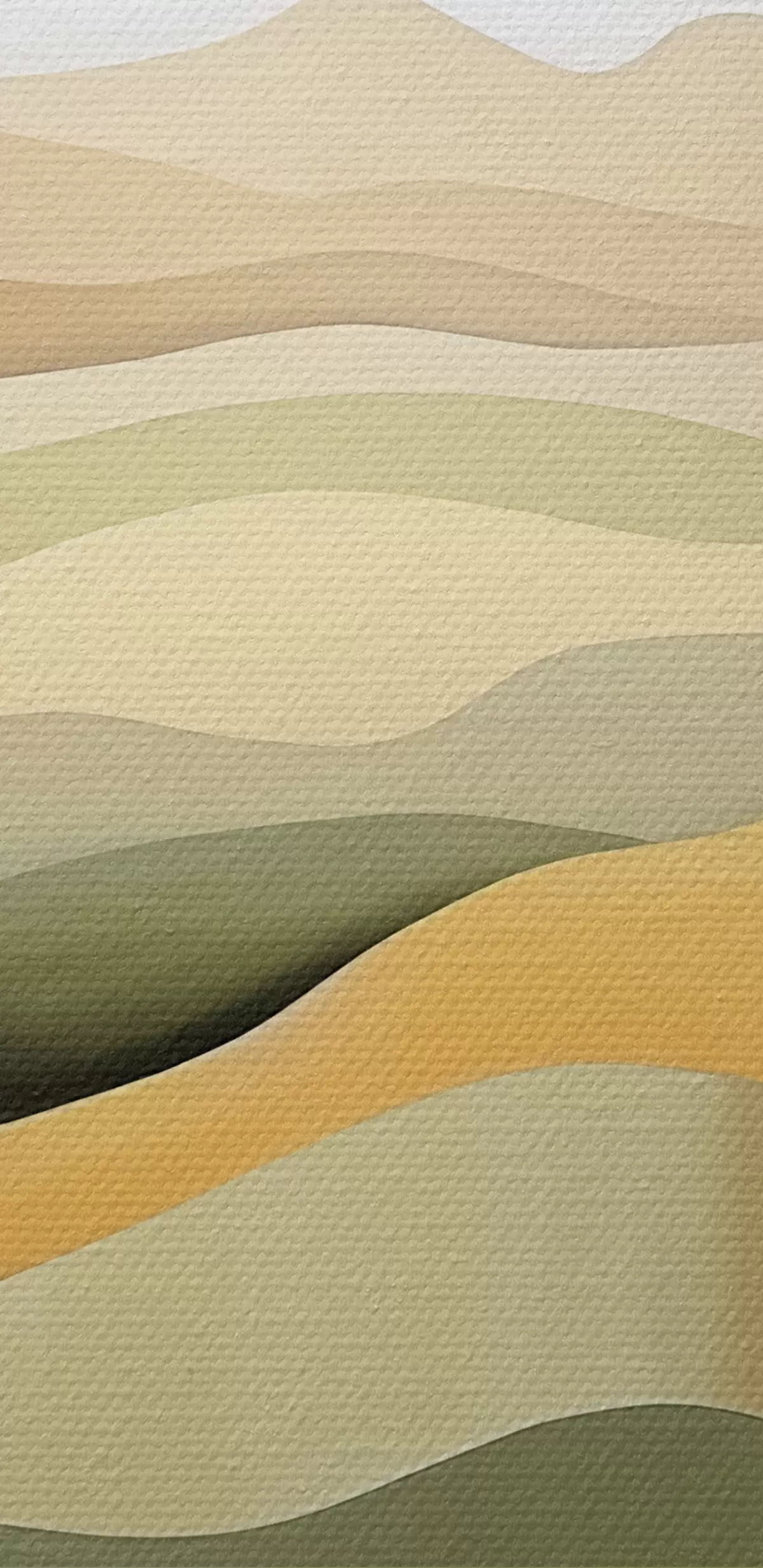 Obraz Kopce, abstraktná krajina, kvaš, zelená, okrová, sépia, sivá Nr. s38952