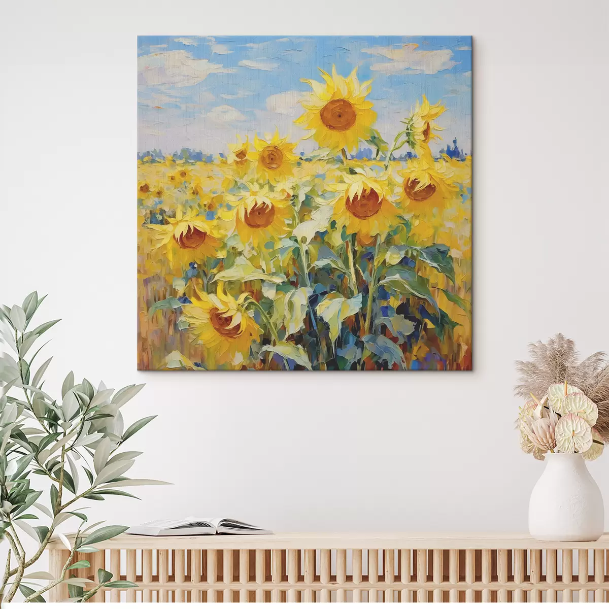 Obraz Pole slnečnice olejomaľba, žltá a modrá farba Nr. s38953